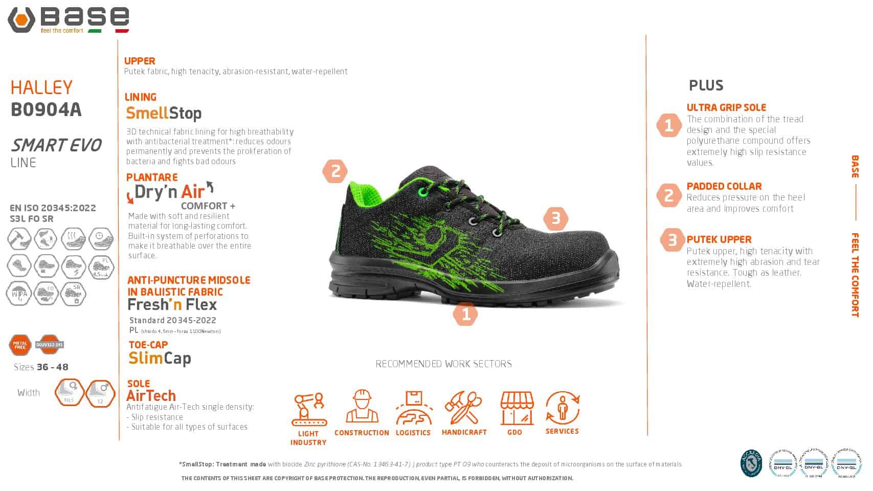 Buty robocze Halley S3L FO SR Base B0904A – wodoodporne, lekkie, bez metalu
