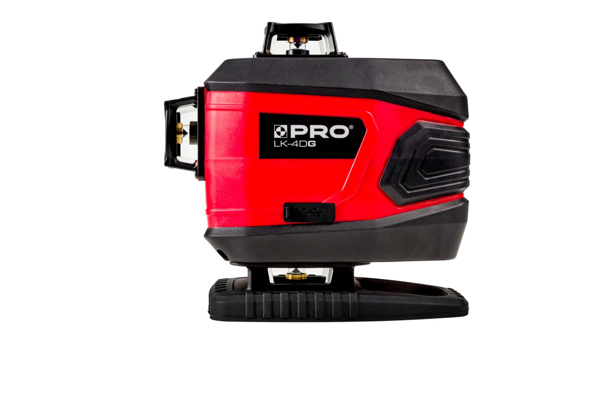 Laser krzyżowy PRO LK-4DG 4×360° zielony – elektroniczne poziomowanie ±1mm/10m (Zestaw)