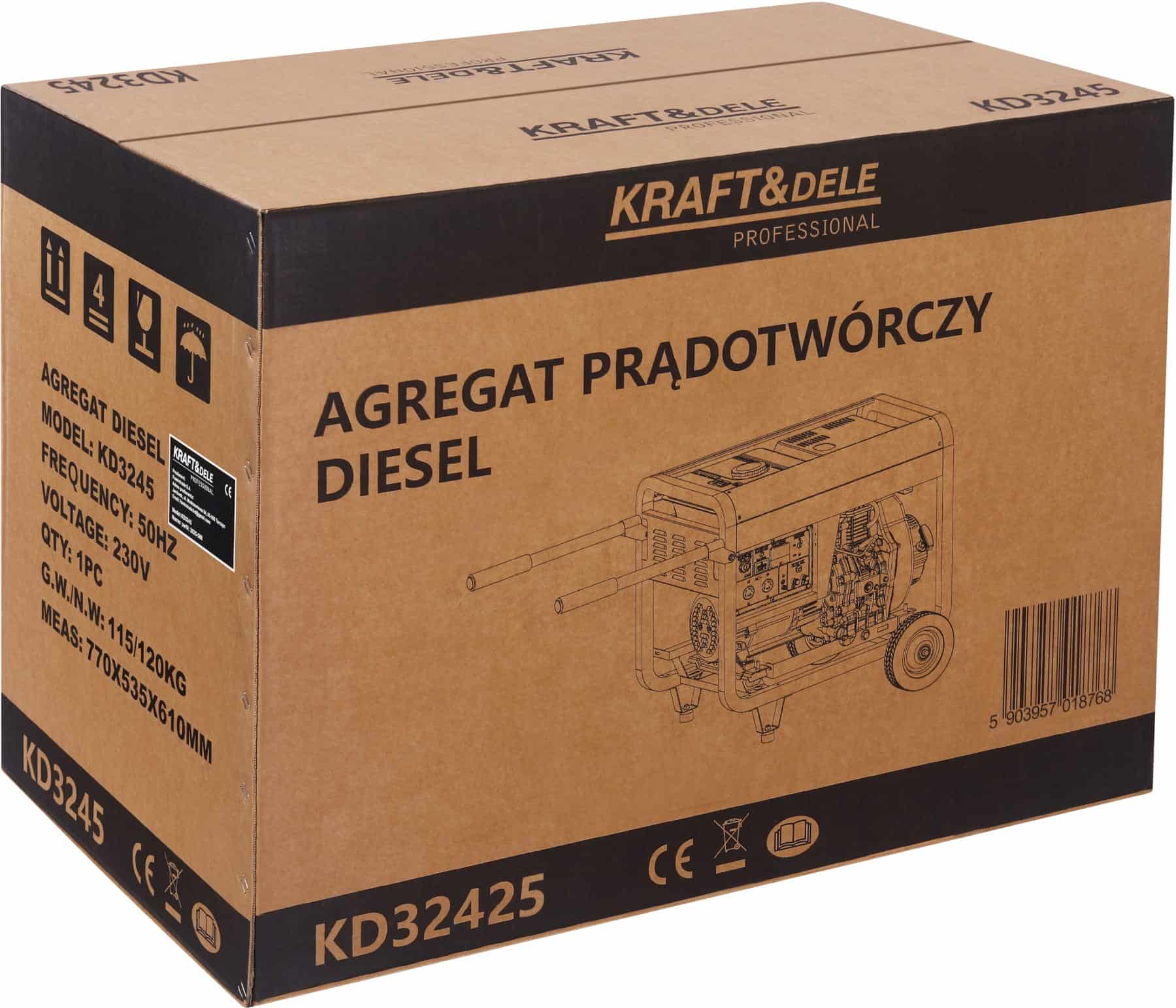 KD3245 to solidny agregat prądotwórczy marki KRAFT&DELE, zaprojektowany do niezawodnego zasilania urządzeń jednofazowych i trójfazowych. Dzięki wytrzymałej ramie, mocnej konstrukcji oraz silnikowi wysokoprężnemu urządzenie doskonale sprawdzi się na placach budowy, w gospodarstwach, warsztatach oraz jako awaryjne źródło energii.