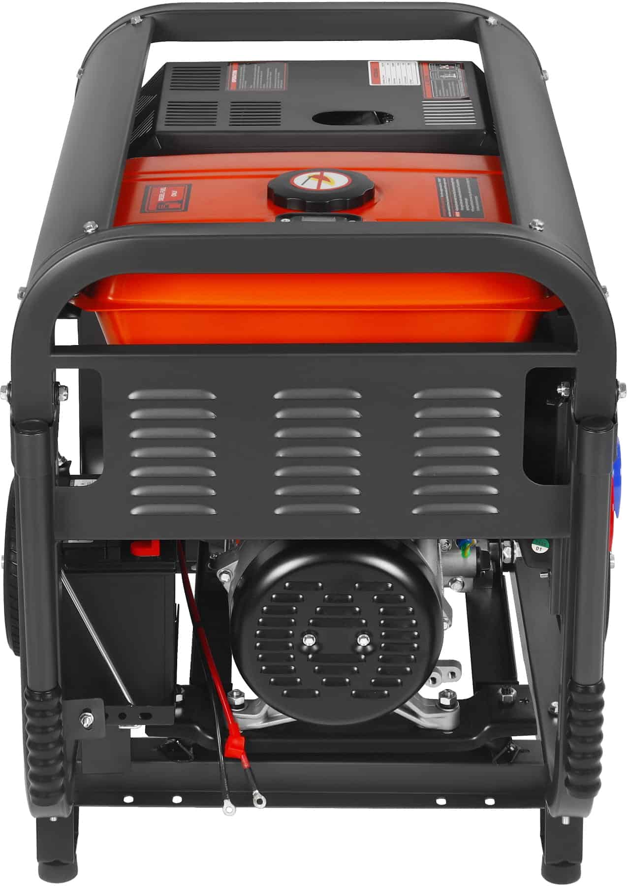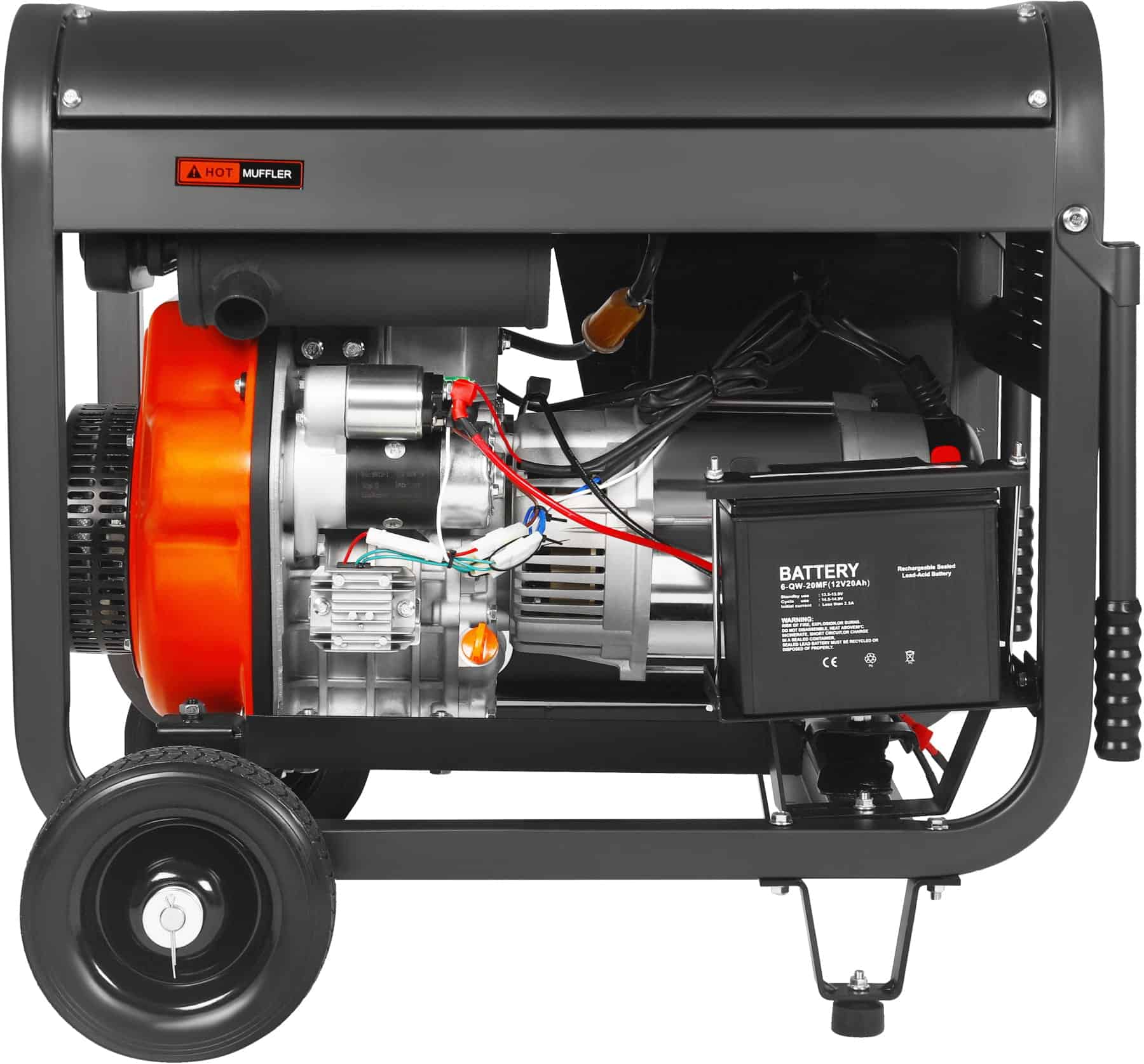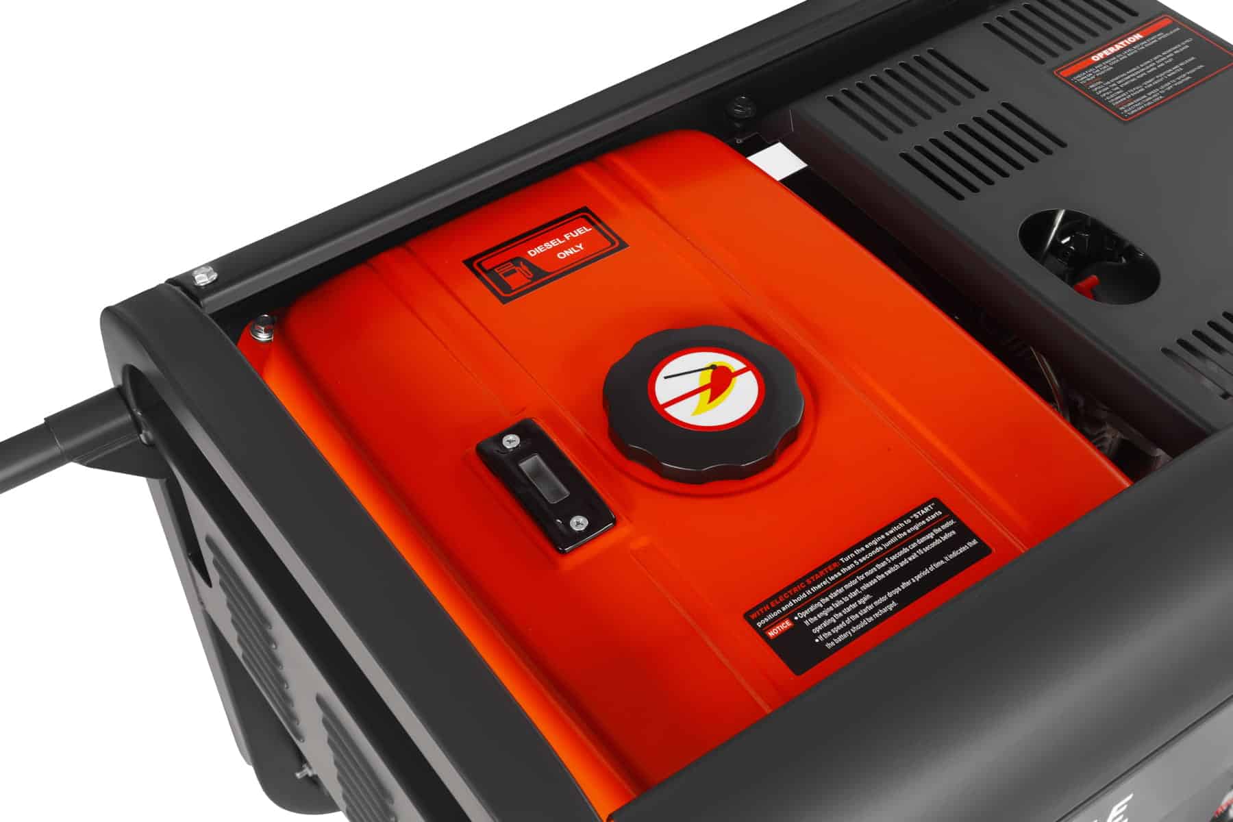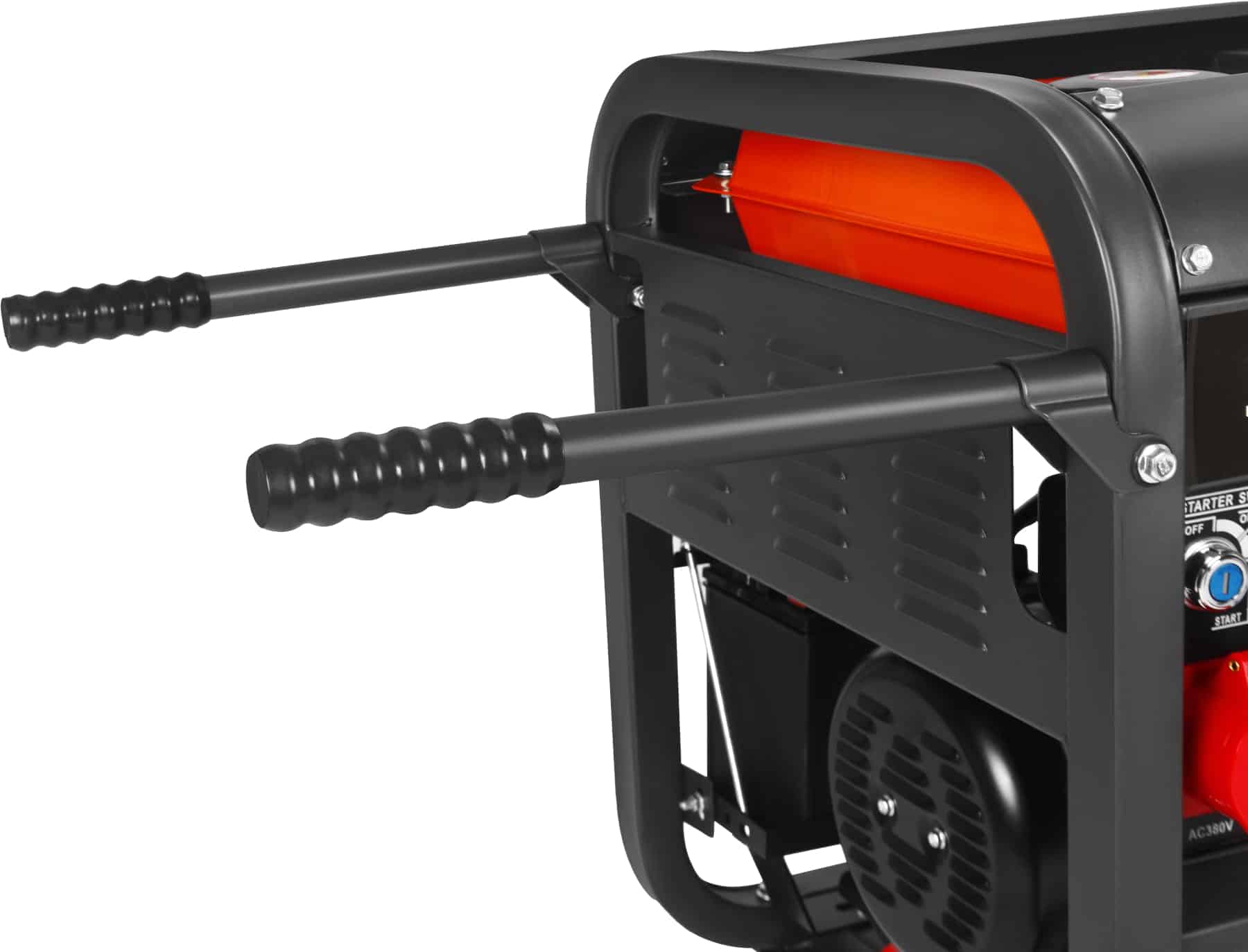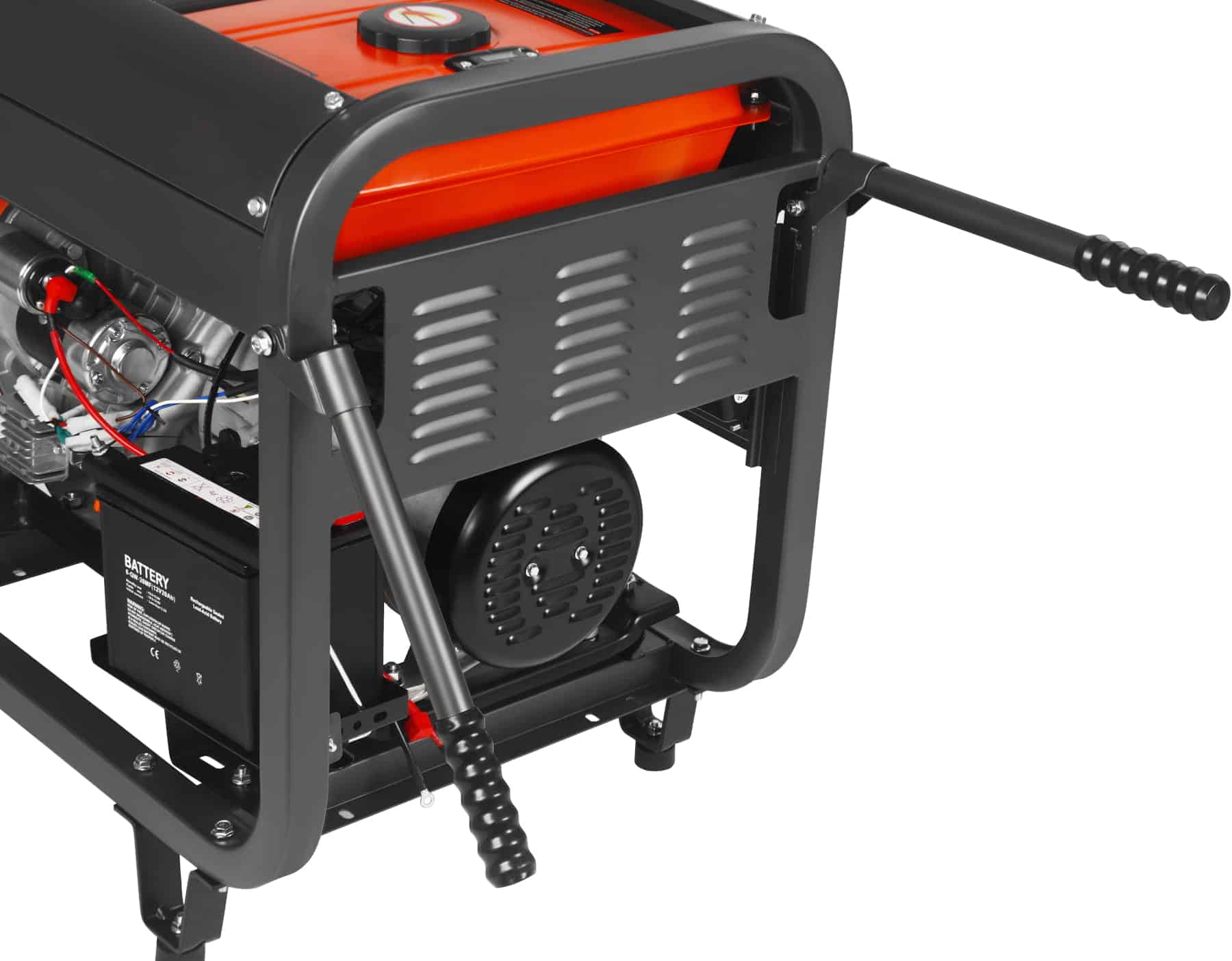 Model KD3245 oferuje gniazda 220V, 220V 32A, 400V oraz dodatkowe złącze 12V 8,3A, co zapewnia dużą elastyczność podłączeń. Wyposażony został w woltomierz, wyłącznik awaryjny oraz elektryczny system rozruchu. Silnik osadzony na poduszkach skutecznie ogranicza drgania, a duże koła transportowe i rozkładane rękojeści znacząco ułatwiają przemieszczanie agregatu. Całość zamknięta jest w stabilnej, stalowej ramie chroniącej osprzęt podczas pracy i transportu.