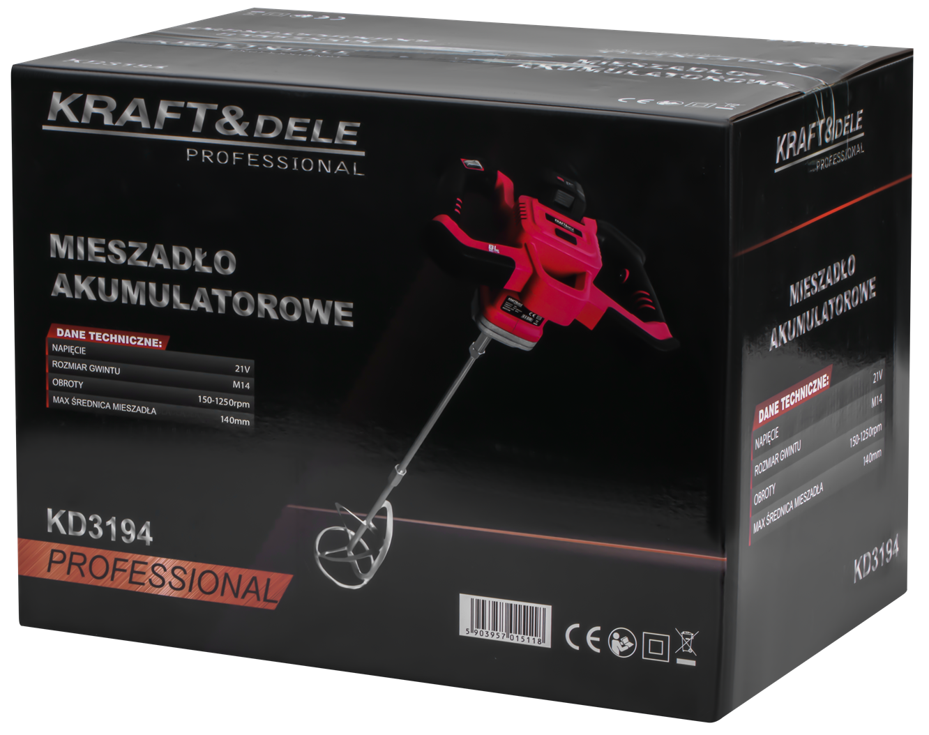 MIESZADŁO AKUMULATOROWE BEZSZCZOTKOWE 21V 2x4Ah KD3194