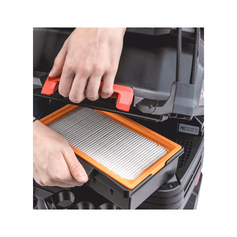 - Do odkurzania na mokro należy stosować płaski filtr harmonijkowy PES.