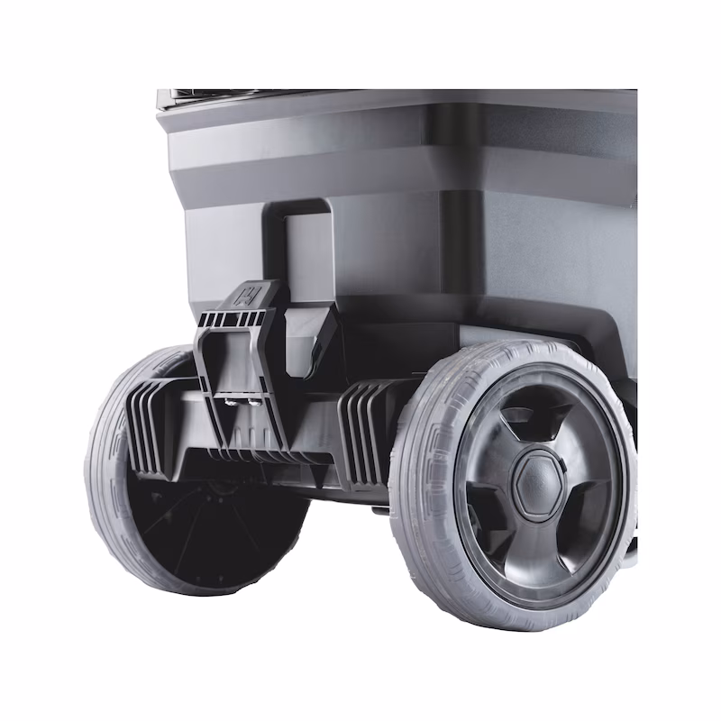 Solidny pojemnik ze zderzakami i dużymi, solidnymi metalowymi rolkami
