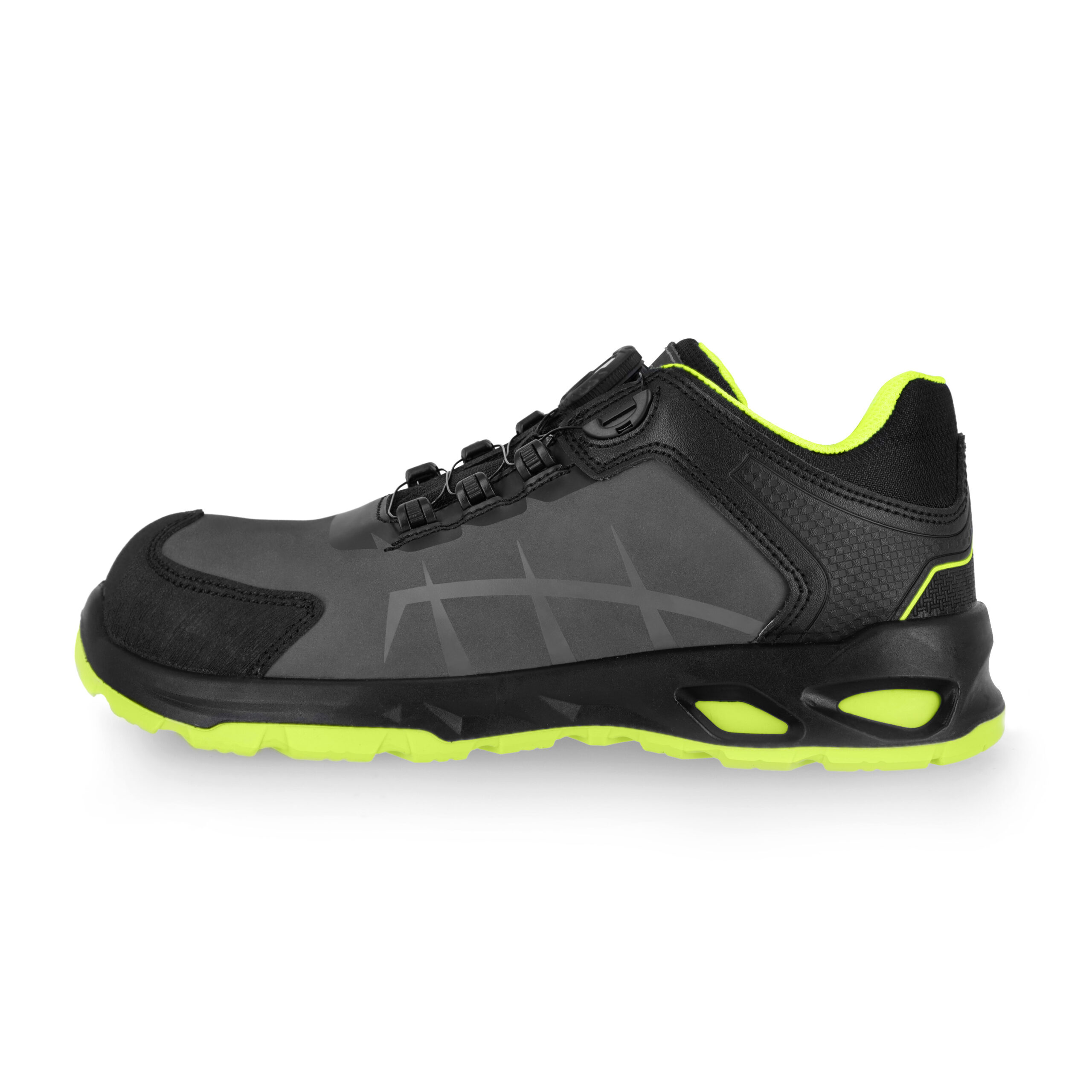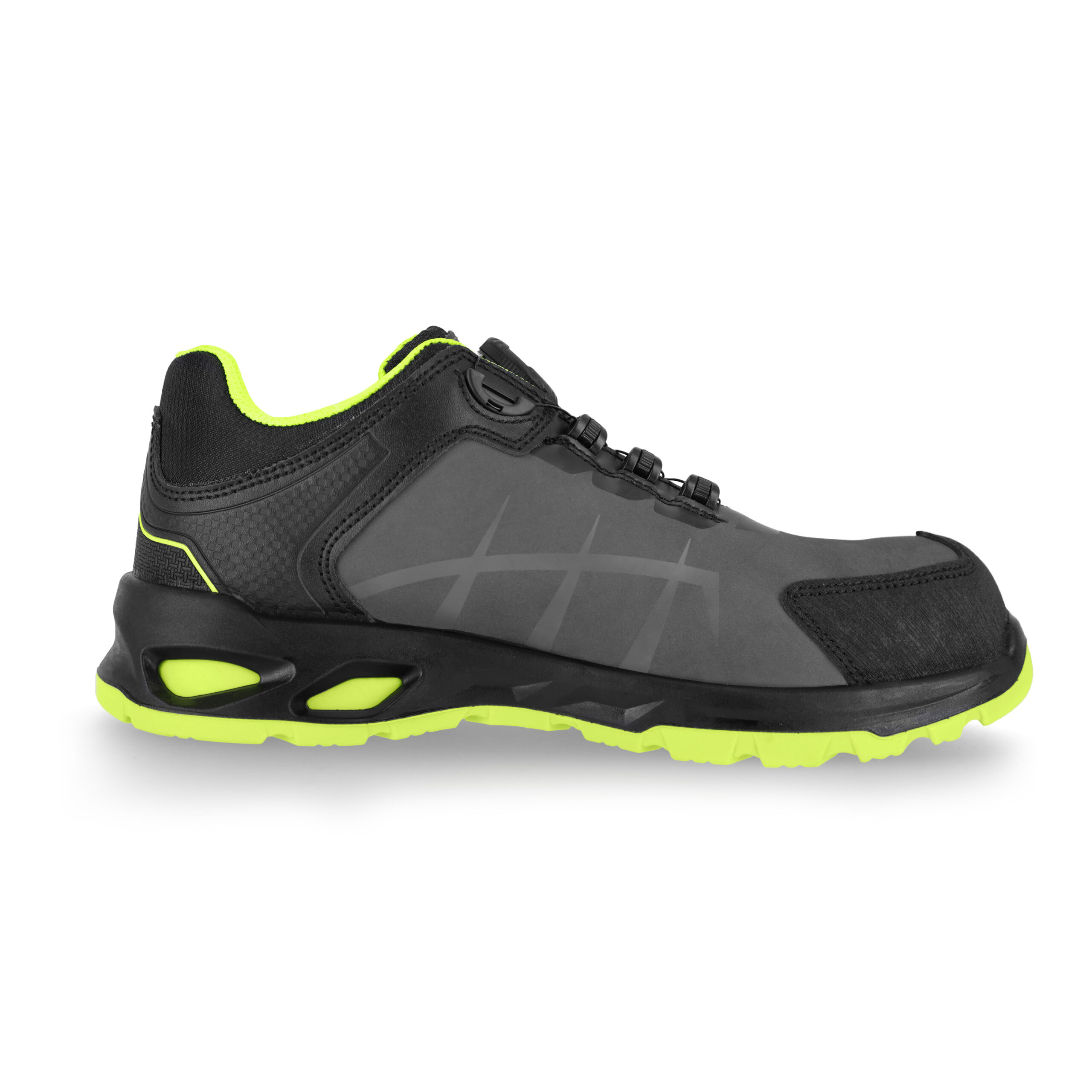 Półbuty bezpieczne NEXO S3S z systemem sznurowania SPINPRO. Wykonane ze skóry nubukowej, ze stalowym podnoskiem ochronnym oraz kevlarową wkładką antyprzebiciową. Podeszwa z dwugęstościowego poliuretanu PU/PU, antyelektrostatyczna, antypoślizgowa i olejoodporna. Absorpcja energii w części piętowej. Komfortowa, miękka, elastyczna wkładka z pianki z włókien organicznych o wysokich właściwościach absorbcji wstrząsów, oddychających i przeciwpotnych. Wyściółka z materiału o właściwościach higroskopijnych i wentylujących. Wzmocnienie czubków zapobiega przetarciom i uszkodzeniom mechanicznym. Kategoria S3S SR. Spełnia wymagania normy EN ISO 20345:2022. Dostępne w rozmiarach: 39 – 47