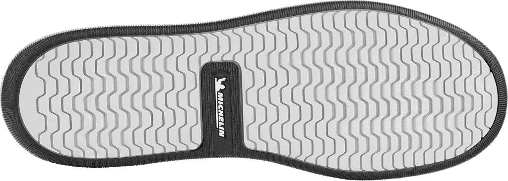 Model wyposażony jest w podeszwę MICHELIN® z gumy, która zapewnia bardzo dobrą przyczepność i wysoką odporność na zużycie. Specjalny bieżnik inspirowany technologią opon Michelin poprawia stabilność podczas chodzenia na różnych nawierzchniach.