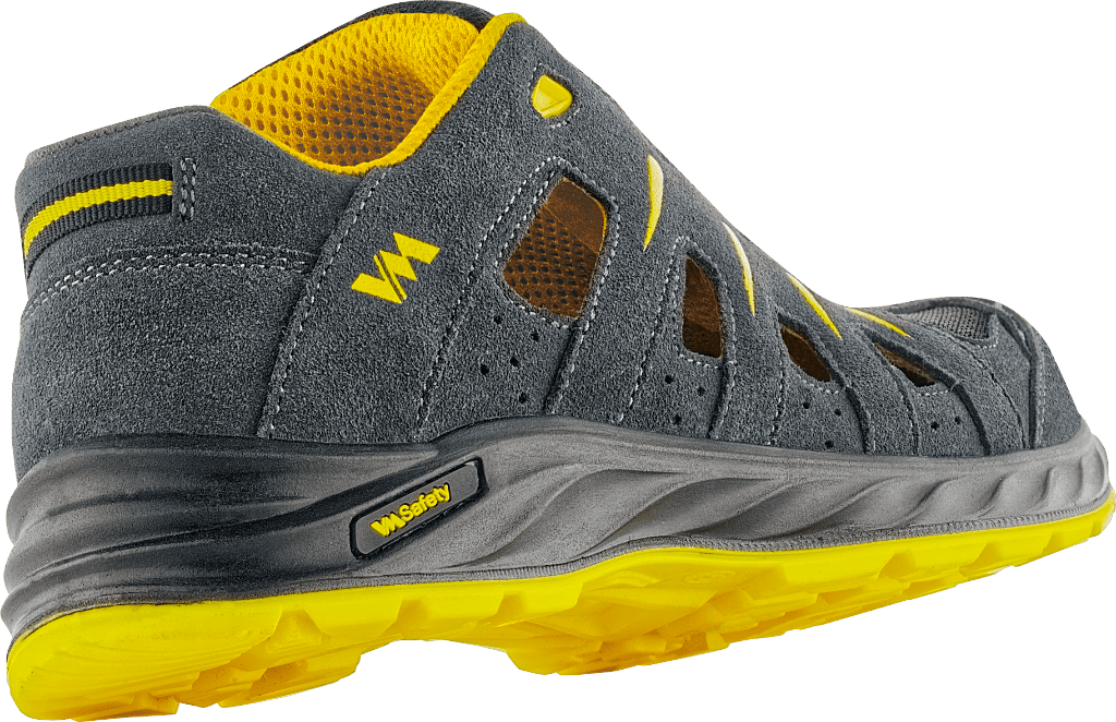 Cholewka wykonana została z wysokiej jakości welurowej skóry bydlęcej, która zapewnia trwałość, dobrą oddychalność oraz wysoki komfort użytkowania. Otwarta konstrukcja sandałów poprawia cyrkulację powietrza, dzięki czemu buty świetnie sprawdzają się podczas pracy w cieplejszych warunkach.