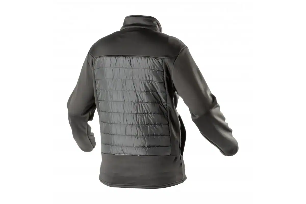 Starannie wykonana męska bluza hybrydowa. Z przodu i z tyłu na korpusie ocieplana elementami pikowanymi, natomiast na rękawach i panelach bocznych wykończona elastyczną dzianiną. Wysokiej jakości materiały zapewniają wytrzymałość, wysoki komfort użytkowania i nie ograniczają ruchów. Bluza łatwo się kompresuje i niewiele waży. Dlatego idealnie sprawdza się podczas każdej podróży i aktywności fizycznej. Ubiór całoroczny: w zimie bluzę można nosić pod kurtką, a w chłodniejsze wiosenne, jesienne i letnie dni doskonale sprawdzi się jako samodzielne okrycie. Dodatkowo zastosowane detale odblaskowe pozwalają zwiększyć bezpieczeństwo przemieszczania się po zmroku.