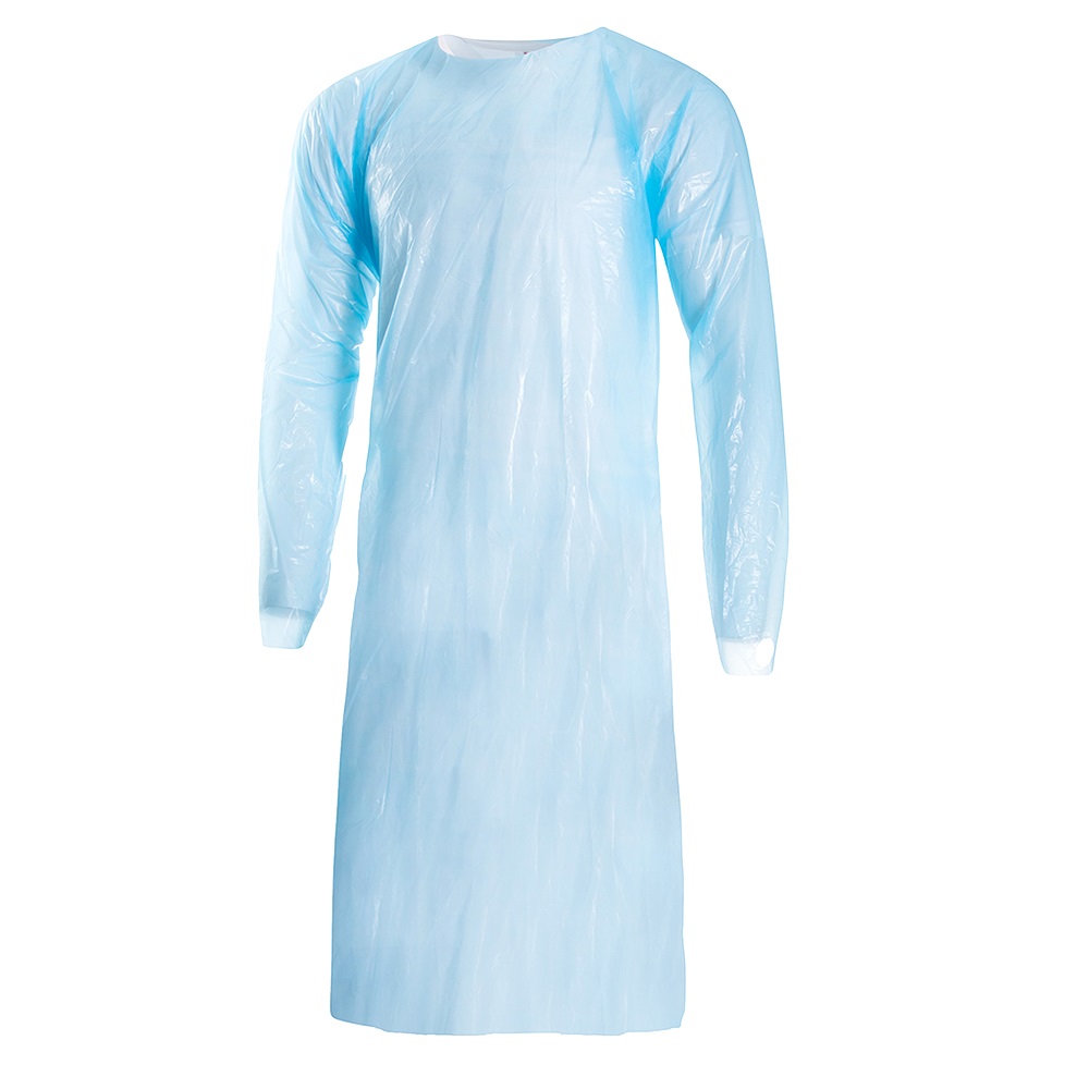 Fartuch z długim rękawem, wykonany z mocnego polietylenu CPE w rozmiarze 120×90 cm, z otworem na kciuk zabezpieczającym przed zsuwaniem się rękawa. Zastosowanie: przemysł spożywczy, medyczny, gastronomiczny i inne, w celu ochrony odzieży przez zanieczyszczeniami i płynami. Pakowanie: opakowanie 25 szt., karton 100 sztt.