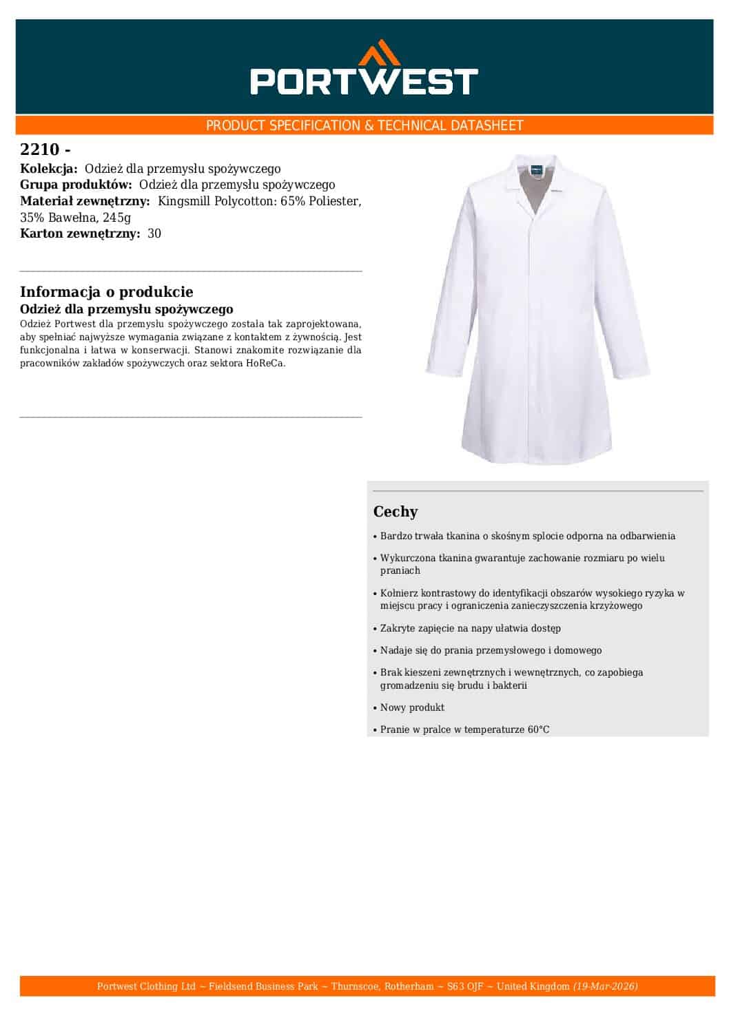 Portwest 2210 to jeden z najczęściej wybieranych fartuchów do środowisk wymagających wysokiej higieny. Łączy trwałość, funkcjonalność i zgodność z wymaganiami sanitarnymi.