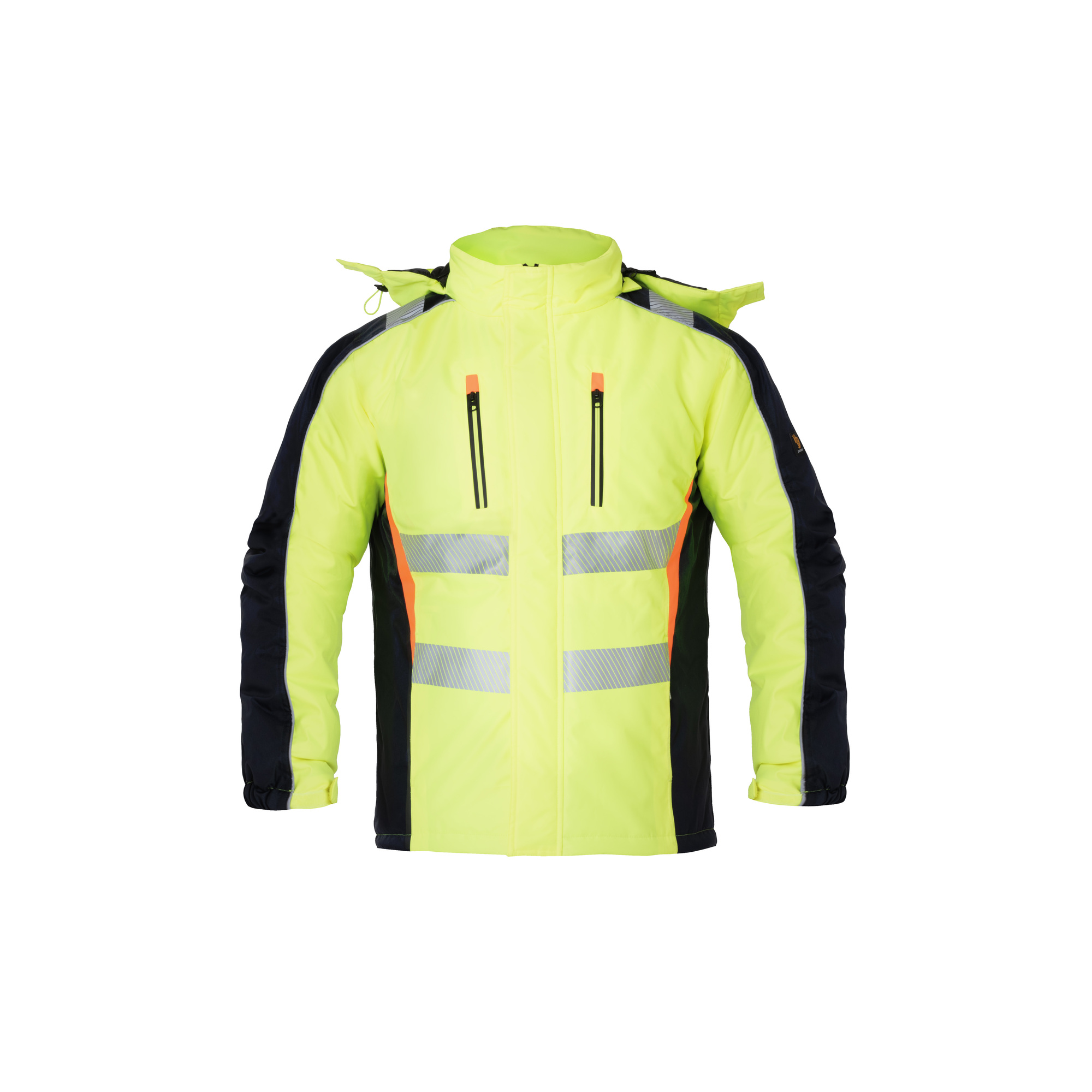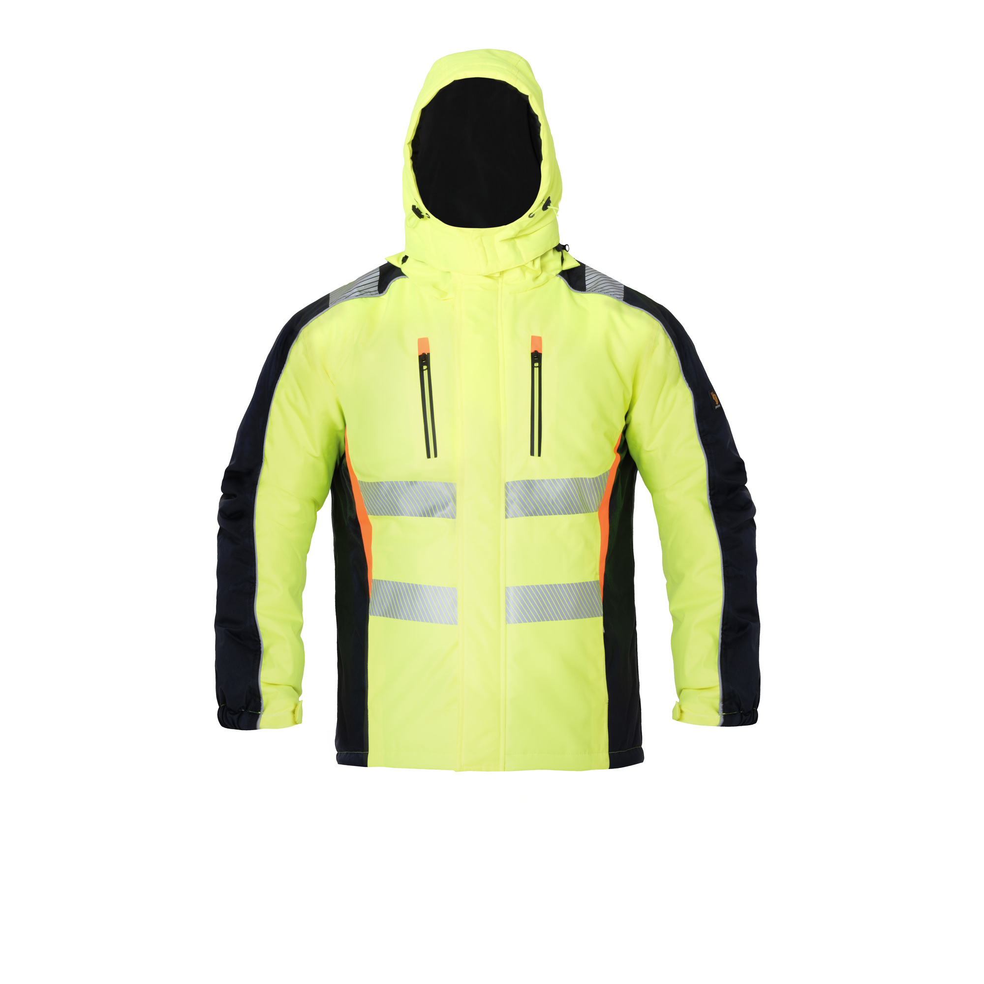 Kurtka ocieplana AURA z pikowaną poliestrową podszewką oraz warstwą zewnętrzną wykonaną w 100% z impregnowanego poliestru. Zasuwana na zamek błyskawiczny osłonięty listwą na napy. Posiada dwie kieszenie na klatce piersiowej z uszczelnionym zamkiem oraz dwie kieszenie dolne zapinane na zamek błyskawiczny kryte listwą, a także małą kieszeń od strony wewnętrznej. Rękawy ze ściągaczami z dodatkowym zapięciem na rzep zwiększają komfort jednocześnie poprawiając izolację termiczną. Odsuwany, ocieplany kaptur ściągany za pomocą troczków z zapięciem na rzep. Dół kurtki z regulacją obwodu. Rozmiary: S- XXL. (UE) 2016/425 Kategoria I – tylko do minimalnych zagrożeń.