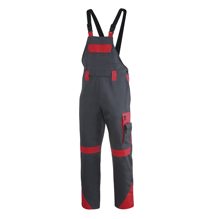 Spodnie ogrodniczki Proplus – tkanina zasadnicza: 100% bawe³na o gramaturze 250 g/m2, wstawki z materia³u kontrastowego: 65% poliester, 35% bawe³na o gramaturze 250 g/m2. 10 funkcjonalnych kieszeni w tym kieszeñ tylna, 2 kieszenie przednie (jedna podwójna) 4 kieszenie boczne w tym kieszeñ na telefon i calówkê oraz kieszeñ typu bojówka oraz 2 kieszenie na bawecie, jedna z przegródkami np. na o³ówek.Dodatkowa regulacja obwodu pasa. Rygle wzmacniaj¹ce i podwójne szwy zwiêkszaj¹ce wytrzyma³oæ. Wysokiej jakoci guma szelkowa i klamry. Rozmiary od 48-62.