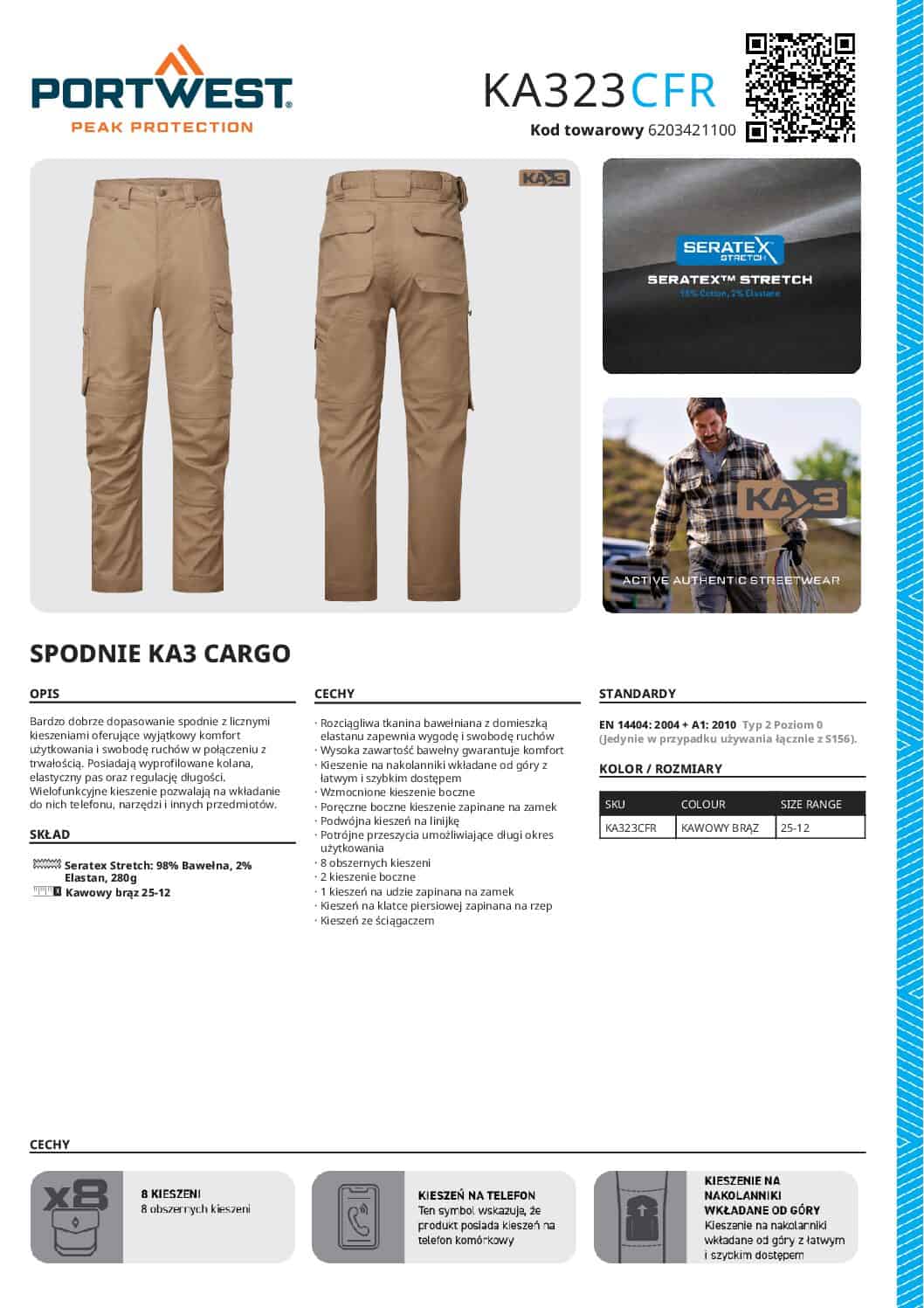 Wielofunkcyjne kieszenie pozwalają na wkładanie do nich telefonu, narzędzi i innych przedmiotów.