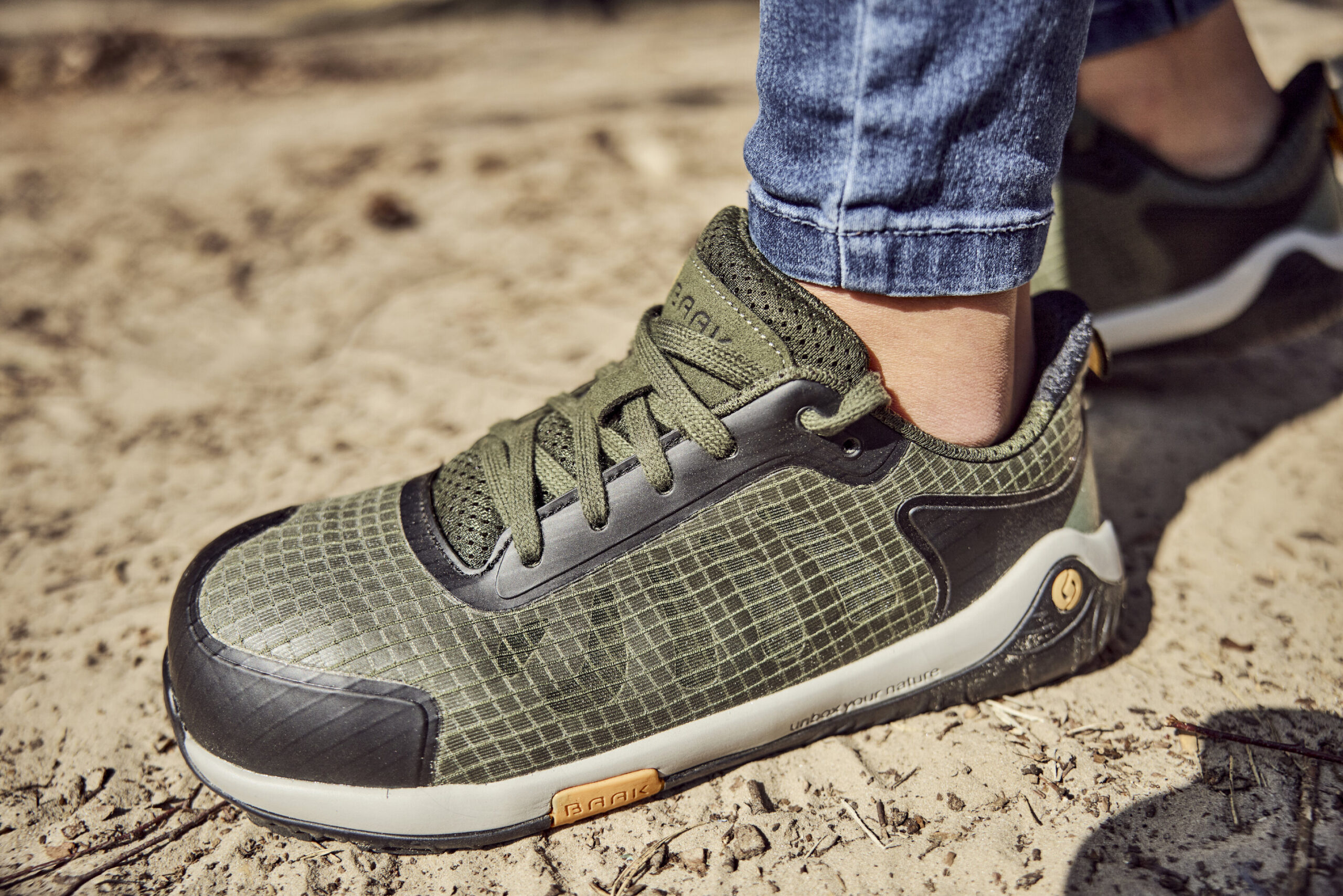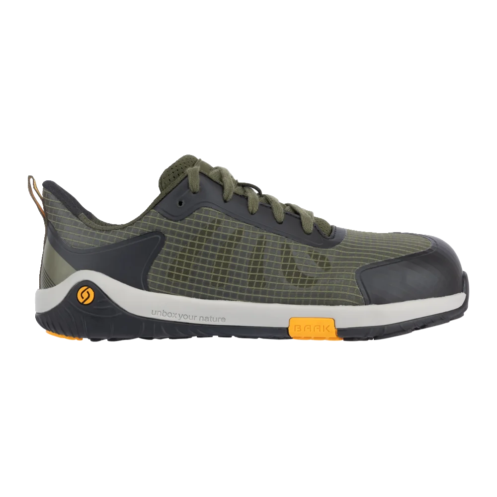 buty Barefoot; art. 226012; DIN EN ISO 20345:2024 S1PS FO HRO SR ESD; wodoodporny materiał tekstylny w 40% pochodzący z recyklingu, z obszarami wentylacyjnymi i aplikacjami z TPU; oddychająca wyściółka typu sandwich, w 65% pochodzący z recyklingu, z obszarami wentylacyjnymi; wkładka Baak Barefoot Zero; system Baak®Go&Relax zapewniający wygodę zginania stóp; podeszwa EVA/guma; nakładka Alu-flex-cap; ochrona przed przebiciem Baak NeoShield; rozmiary: 36-48 / 240-320 mm