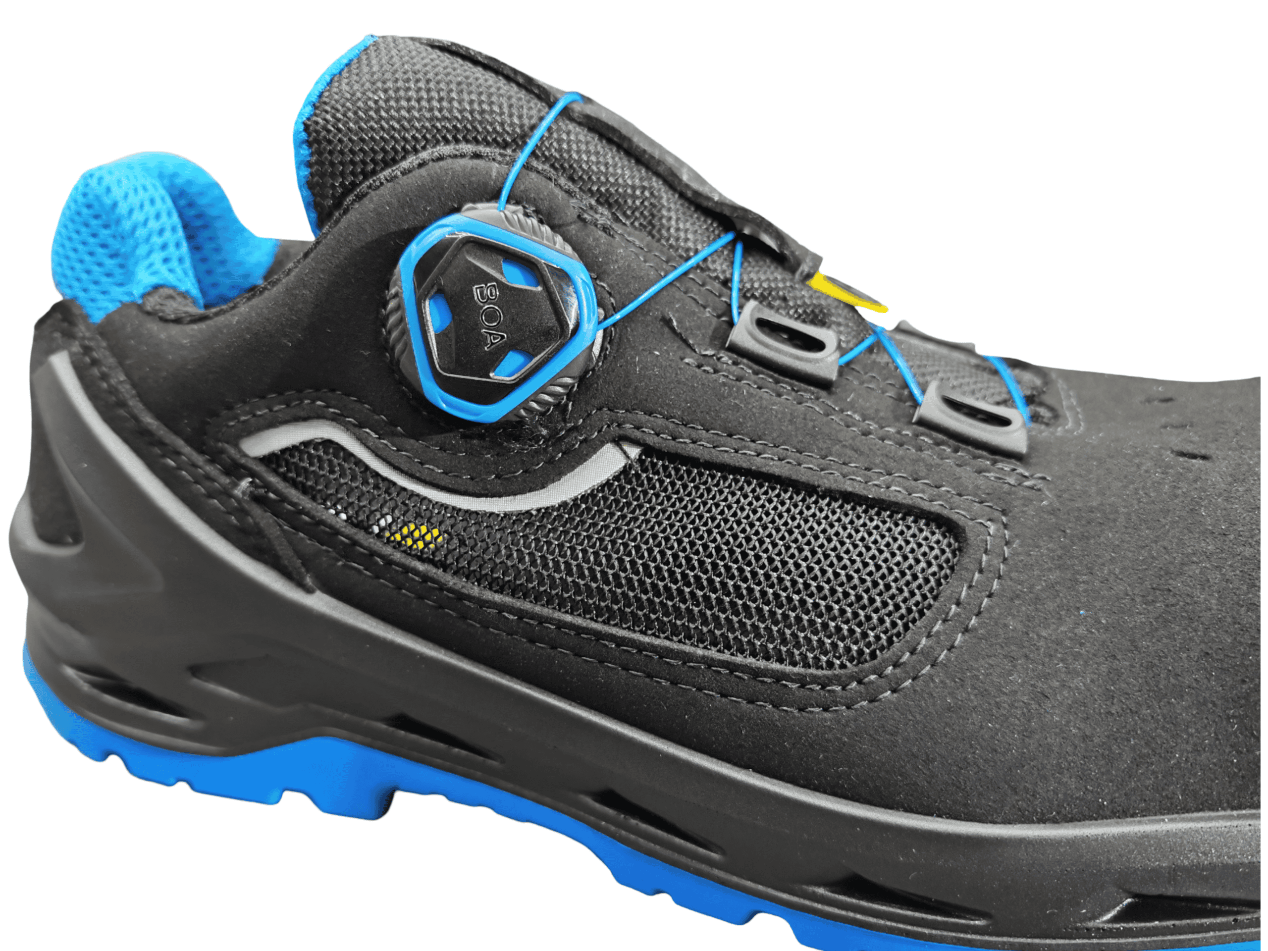 Półbuty Base I-Code B1223 wyróżniają się przede wszystkim doskonałą wentylacją dzięki zastosowaniu siatki mesh i perforacji w cholewce, co znacząco poprawia komfort pracy w ciepłych warunkach.