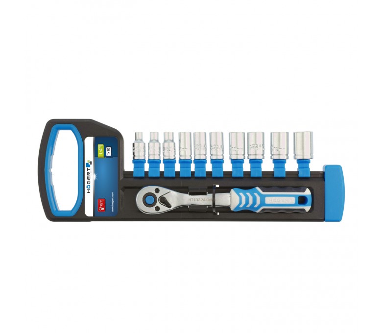 Grzechotka narzędzi 1/4′ 72-zębna z zestawem nasadek HOGERT Nr kat. HT1R334