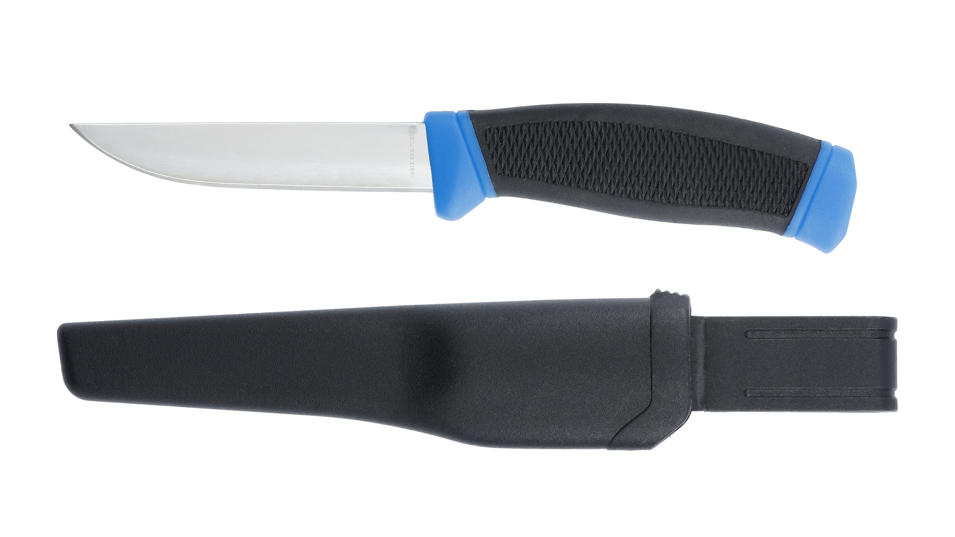 Nóż monterski pomocny w pracach montażowych i instalatorskich. Wykonany ze stali nierdzewnej , świetnie sprawdzi się podczas biwaków, polowań lub wędkowania. Ostrze wykonane jest z szwedzkiej stali nierdzewnej, dzięki czemu jest łatwe w utrzymaniu i dłużej pozostaje ostre. Nóż posiada miękki uchwyt wykonany z gumy TPE, co sprawia, że możemy trzymać go pewnie w dłoni. Polimerowa pochwa ma praktyczny klips służący do mocowania noża do plecaka lub pasa.