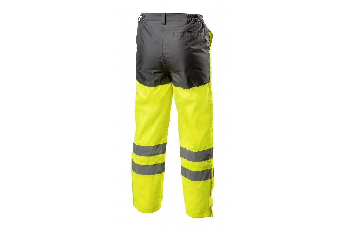 Męskie, ocieplane spodnie ostrzegawcze marki HÖGERT wykonane z najwyższej jakości materiałów. Posiadają dwie taśmy odblaskowe dookoła kolan. Zapewniają maksymalny komfort oraz ochronę przed zimnem i wiatrem. Chronią również przed deszczem (wodoodporność na poziomie 2000 mm H2O). Zwiększają bezpieczeństwo podczas przebywania w warunkach ograniczonej widoczności np. w trakcie przemieszczania w nocy oraz podczas złych warunków pogodowych np. w czasie deszczu lub mgły. Szczególnie polecane w okresie jesiennym i zimowym.