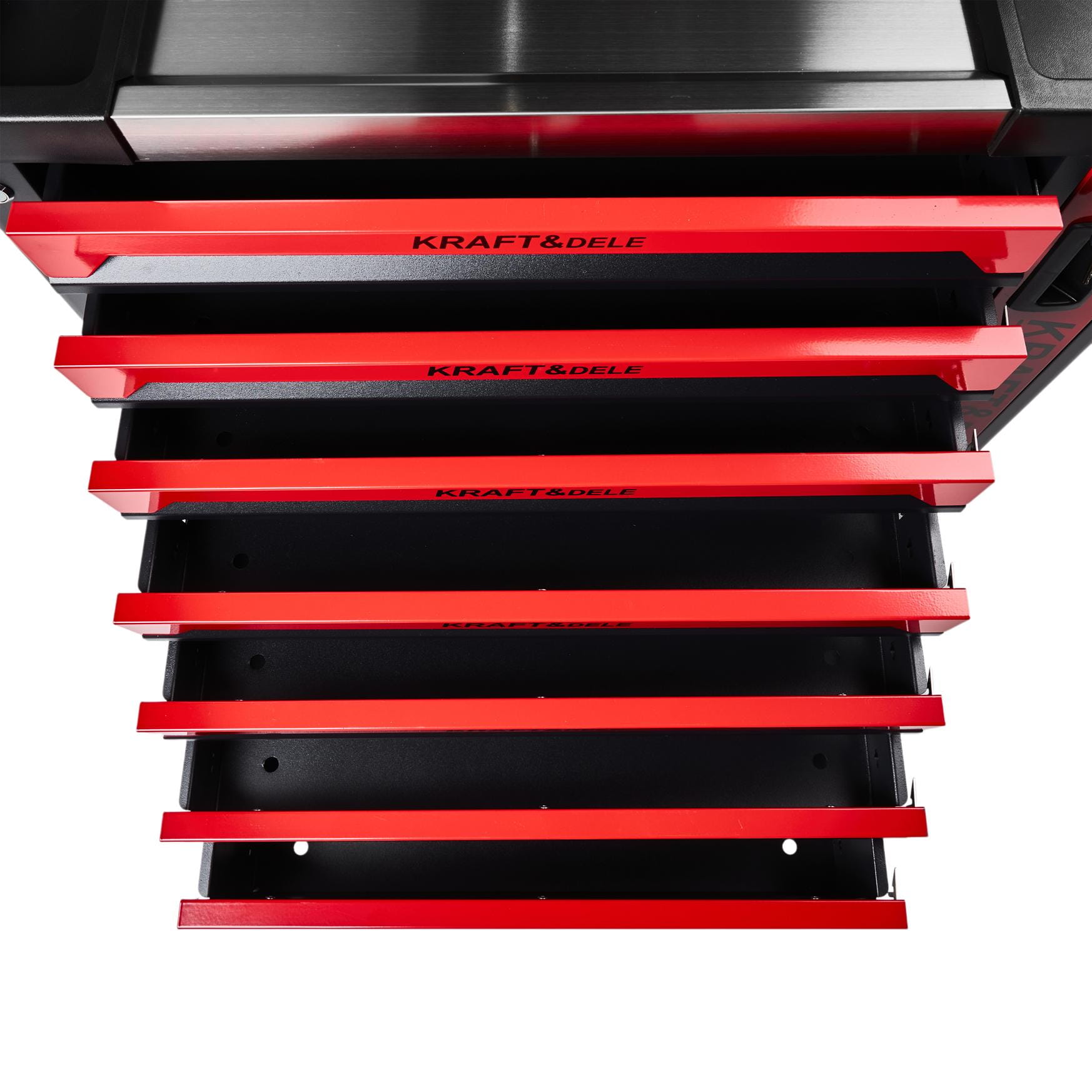 Profesjonalna szafka narzędziowa marki Kraft&Dele model KD1078 to idealne rozwiązanie jeżeli chcesz utrzymać porządek w garażu lub warsztacie. Nasza szafa znacznie ułatwi ci prace, zwiększy jej komfort, oraz efektywność. Zapewni lepszą organizację i wygodę podczas różnych prac w warsztacie.Posiada 9 pojemnych szuflad. Szuflady posiadają prowadnice oraz kulkowy mechanizm ślizgowy ułatwiają wysuwanie. Dodatkowo każda z szuflad posiada blokadę. Wózek wyposażony w 2 skrętne kółka, które mają automatyczną blokadę oraz hamulec, dzięki któremu przemieszczenie się szafy jest niemożliwe. Zapewnia komfort bezpieczeństwa nawet na małych pochyłościach.