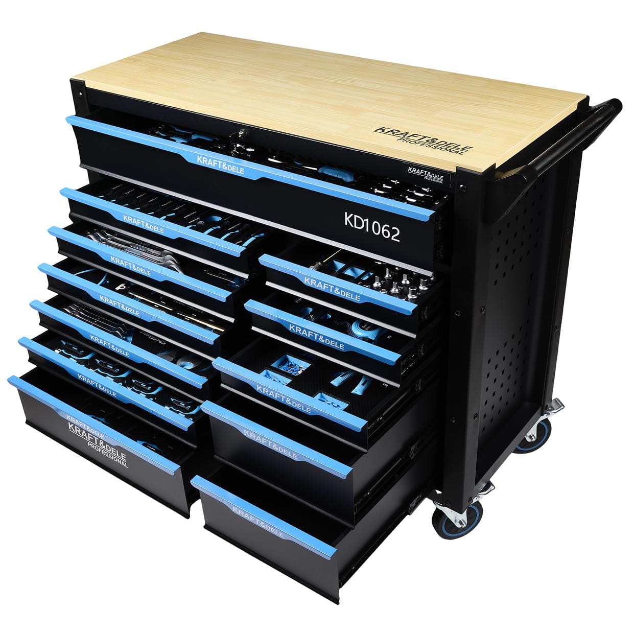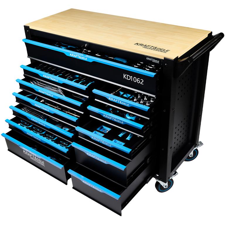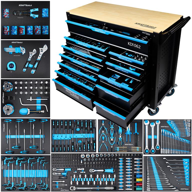 Szafka narzędziowa Kraft&Dele o oznaczeniu KD1062 to niezastąpiony produkt dla warsztatu, garażu i każdego, kto potrzebuje porządku oraz pełnego wyposażenia. W komplecie znajduje się 501 elementów wysokiej jakości, które pozwolą wykonywać różnorodne prace z precyzją i trwałością.
