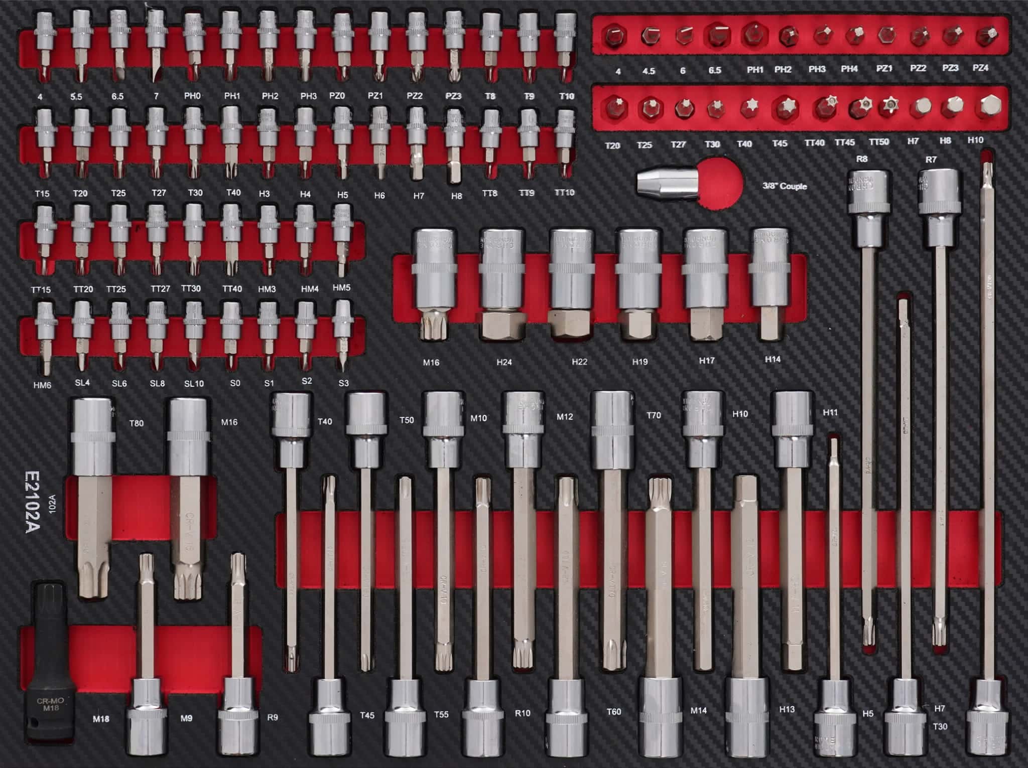 - ✔️ Nasadki 1/4″ z bitami: torx security – t8/t9/t10/t15/t20/t25/t27/t30