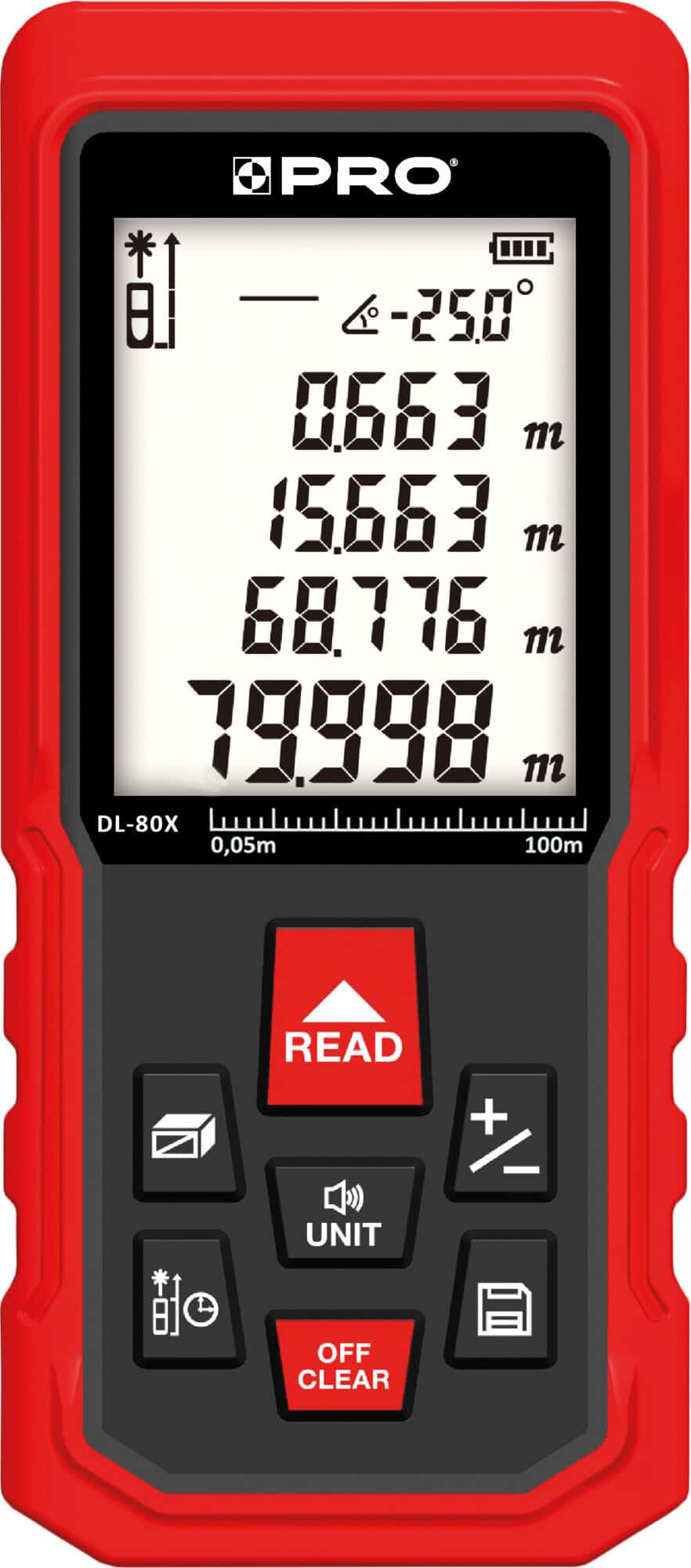 - Umożliwia pracę w zakresie od 0,05 m do 80 m
