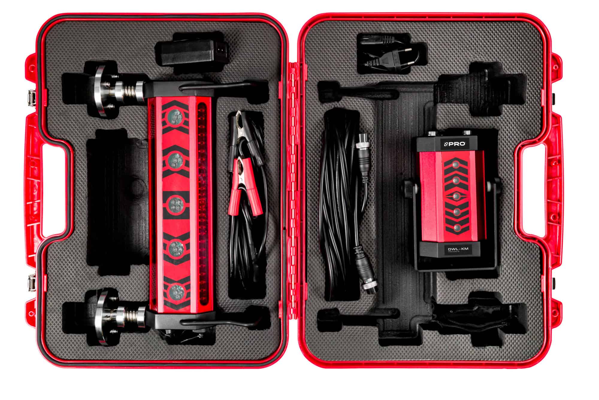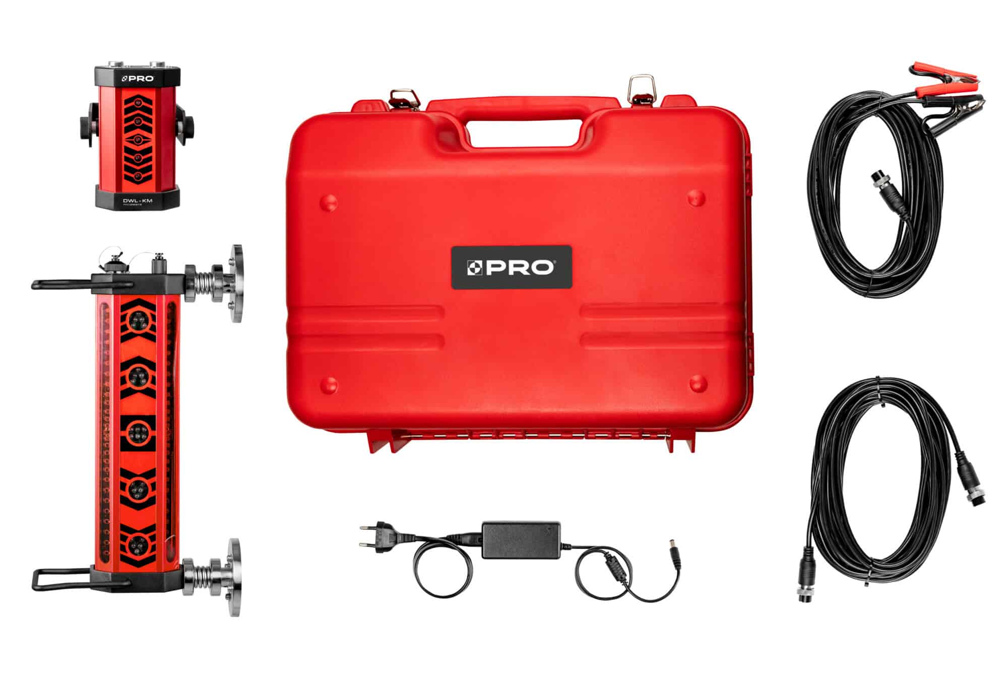 Głównym elementem DWL-KM jest moduł detektora wiązki laserowej współpracujący z laserowymi niwelatorami rotacyjnymi z czerwoną wiązką. Moduł ten doczepia się do maszyny za pomocą mocnych magnesów. Cztery pola światłoczułe, każde o wysokości 25 cm, umożliwiają pracę z laserem w zakresie 360 stopni. Klarowne i duże pola diody w czytelny sposób informują operatora maszyny o pozycji detektora względem wiązki lasera.