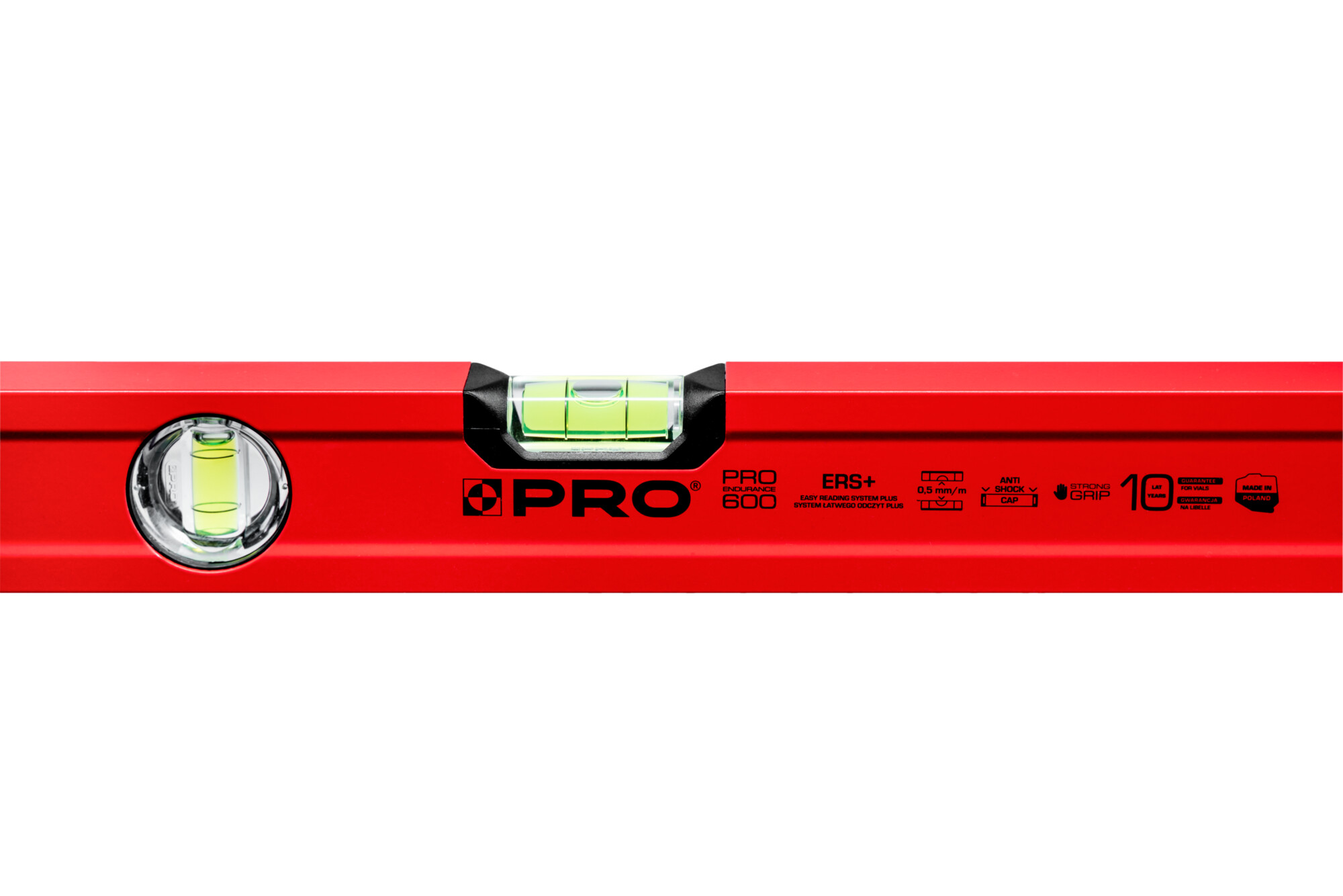 - Nasadki wykonane z elastomeru, zaprojektowane tak, aby pochłaniać siłę uderzenia w przypadku pionowego upadku poziomnicy (ANTI SHOCK CAP)