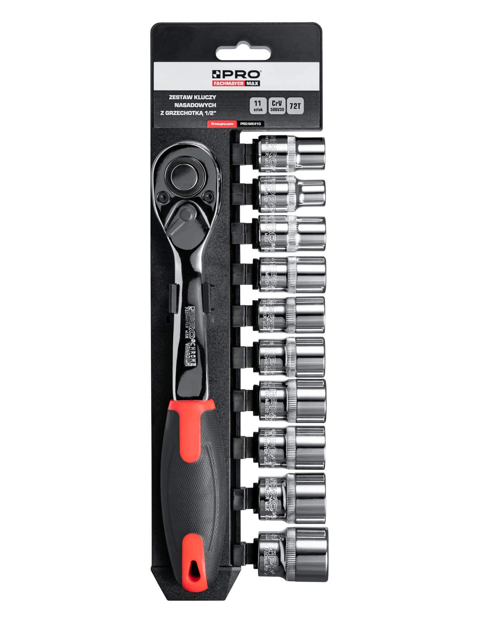 - zestaw kluczy nasadowych 1/2″ składający się z 11 elementów