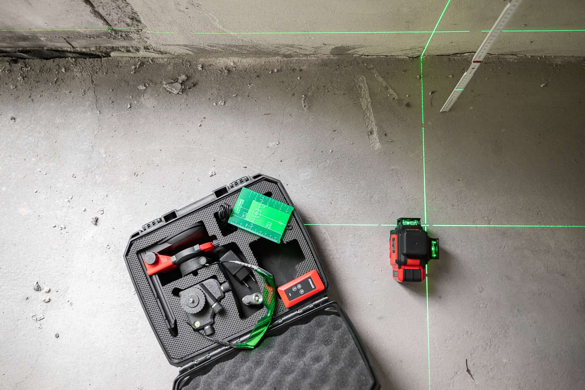 - funkcja pionownika laserowego (os krzyza na suficie oraz podłozu wyznacza pion)