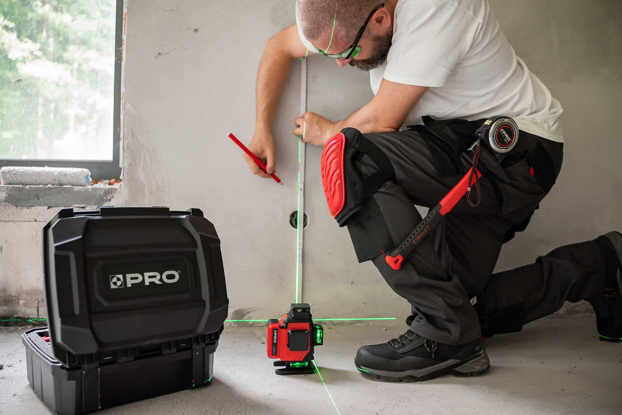- laser wieloliniowy PRO-AQ4DG generuje 4 płaszczyzny 360°, dwie poziome i dwie pionowe przecinające się pod kątem 90°