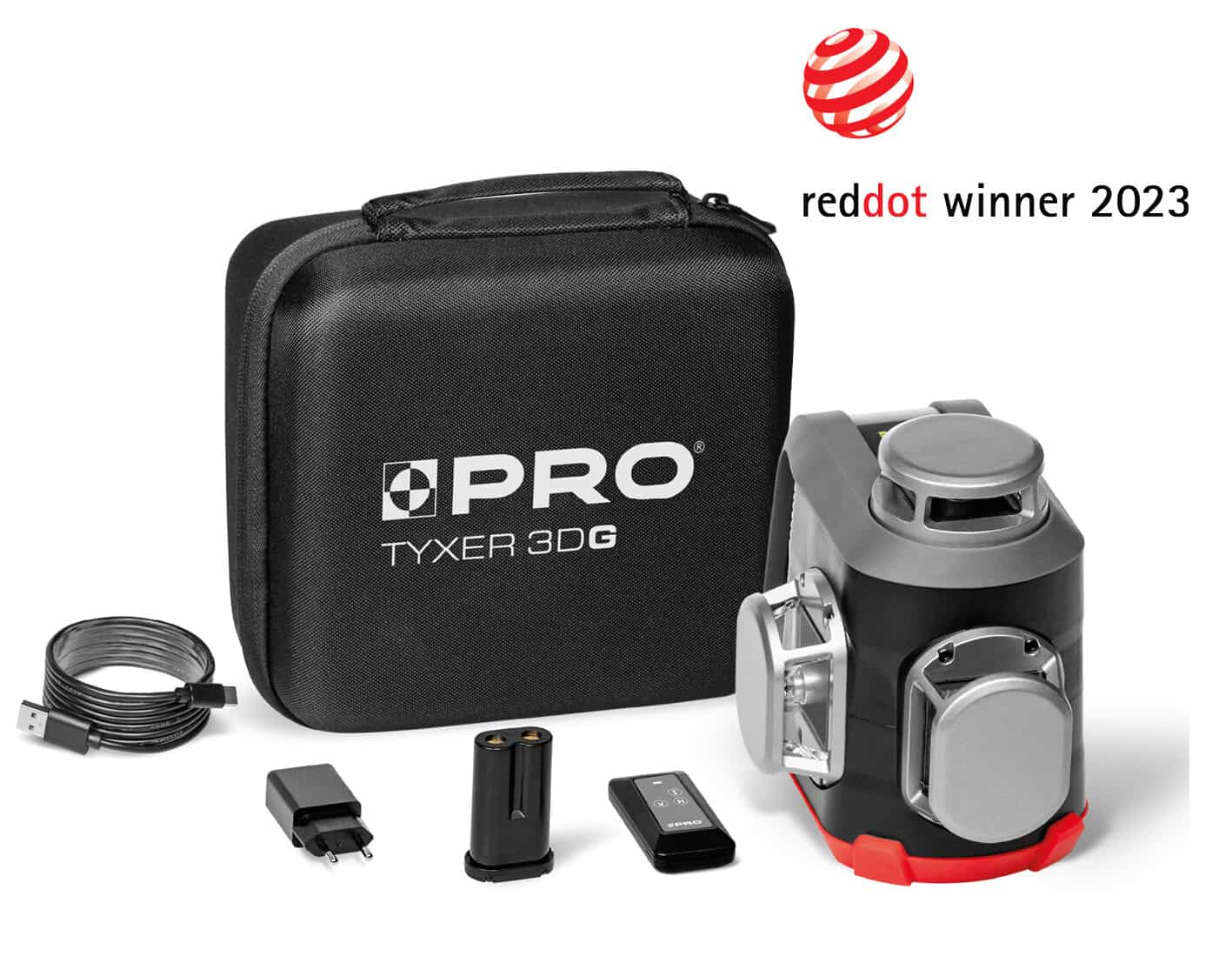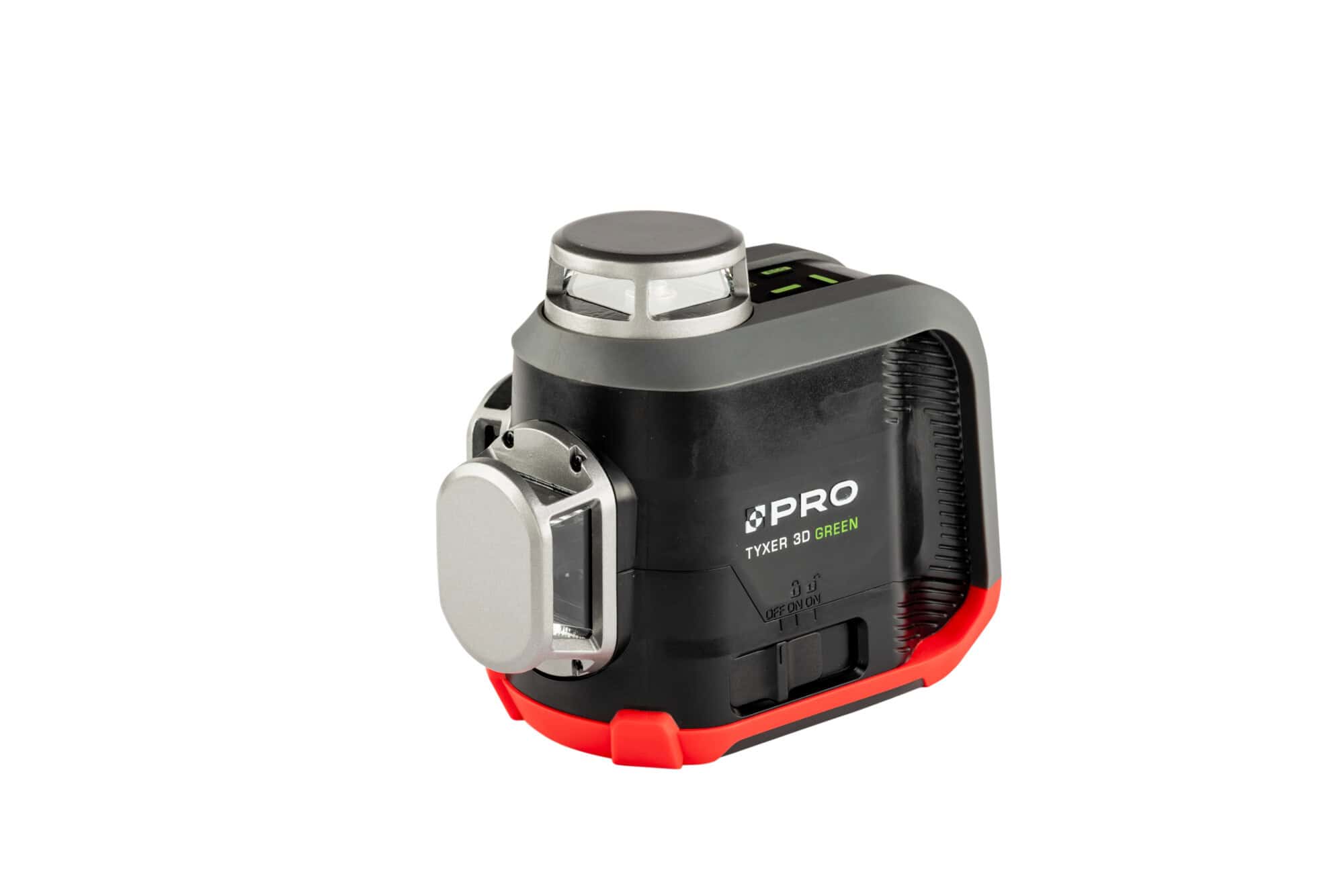 - Laser wieloliniowy TYXER 3DG generuje 3 płaszczyzny 360°, jedna pozioma i dwie pionowe przecinające sią pod kątem 90°