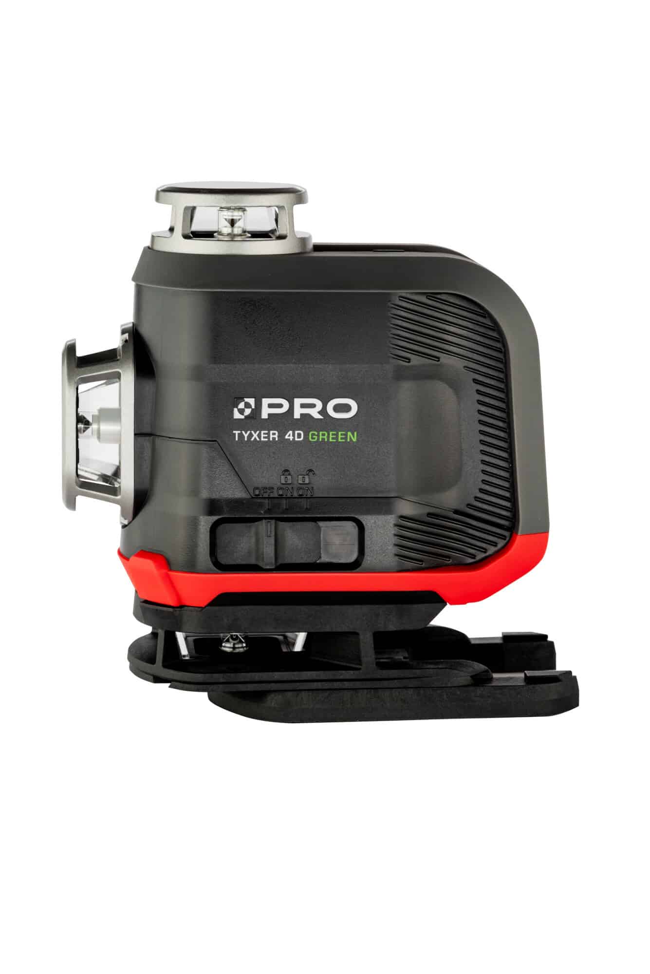 - Model TYXER 4DG posiada zdejmowany element stopy, który po demontażu pozwala urządzeniu na wyświetlenie dolnej wiązki na poziomie już 8,5mm od podłoża