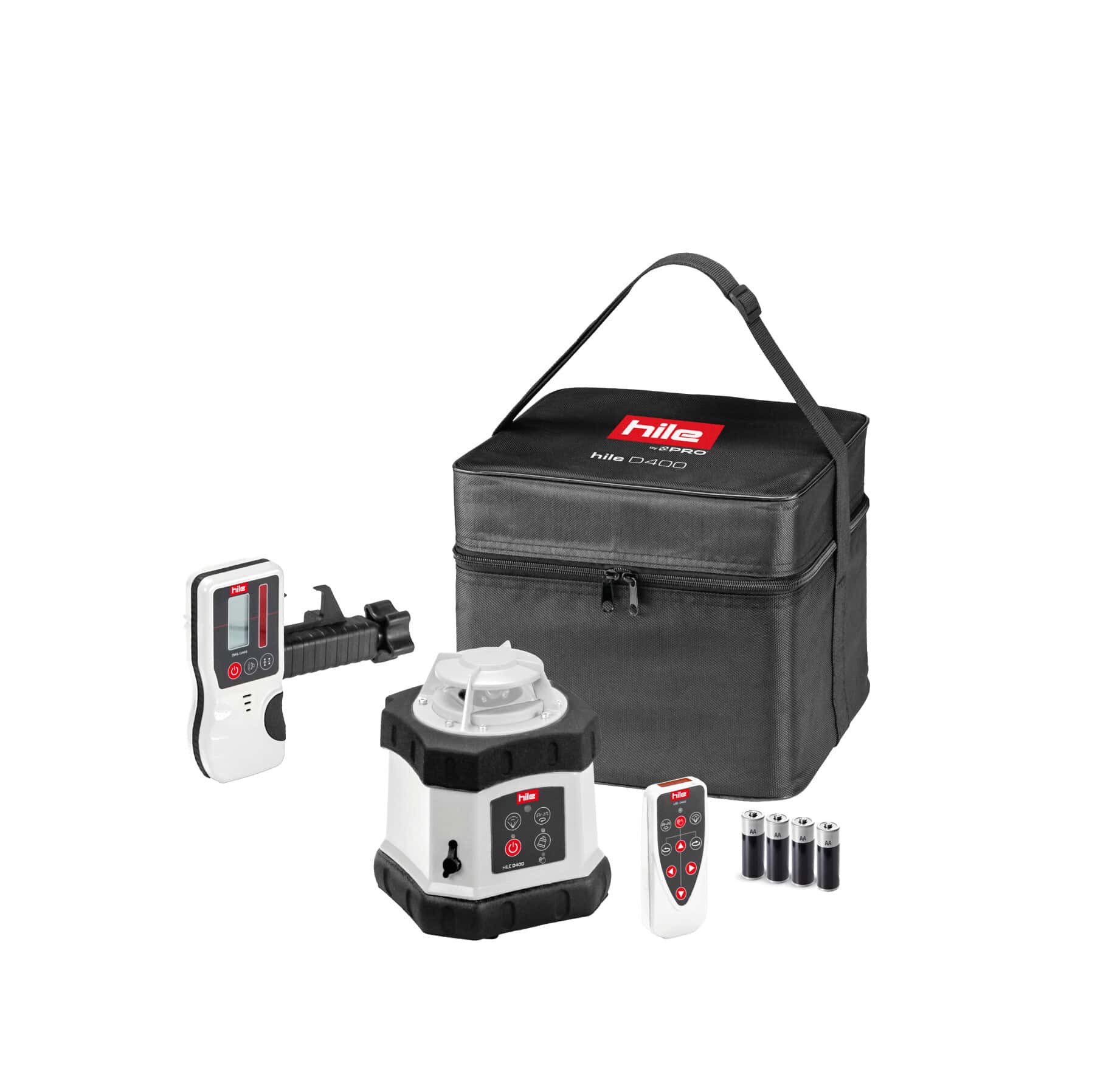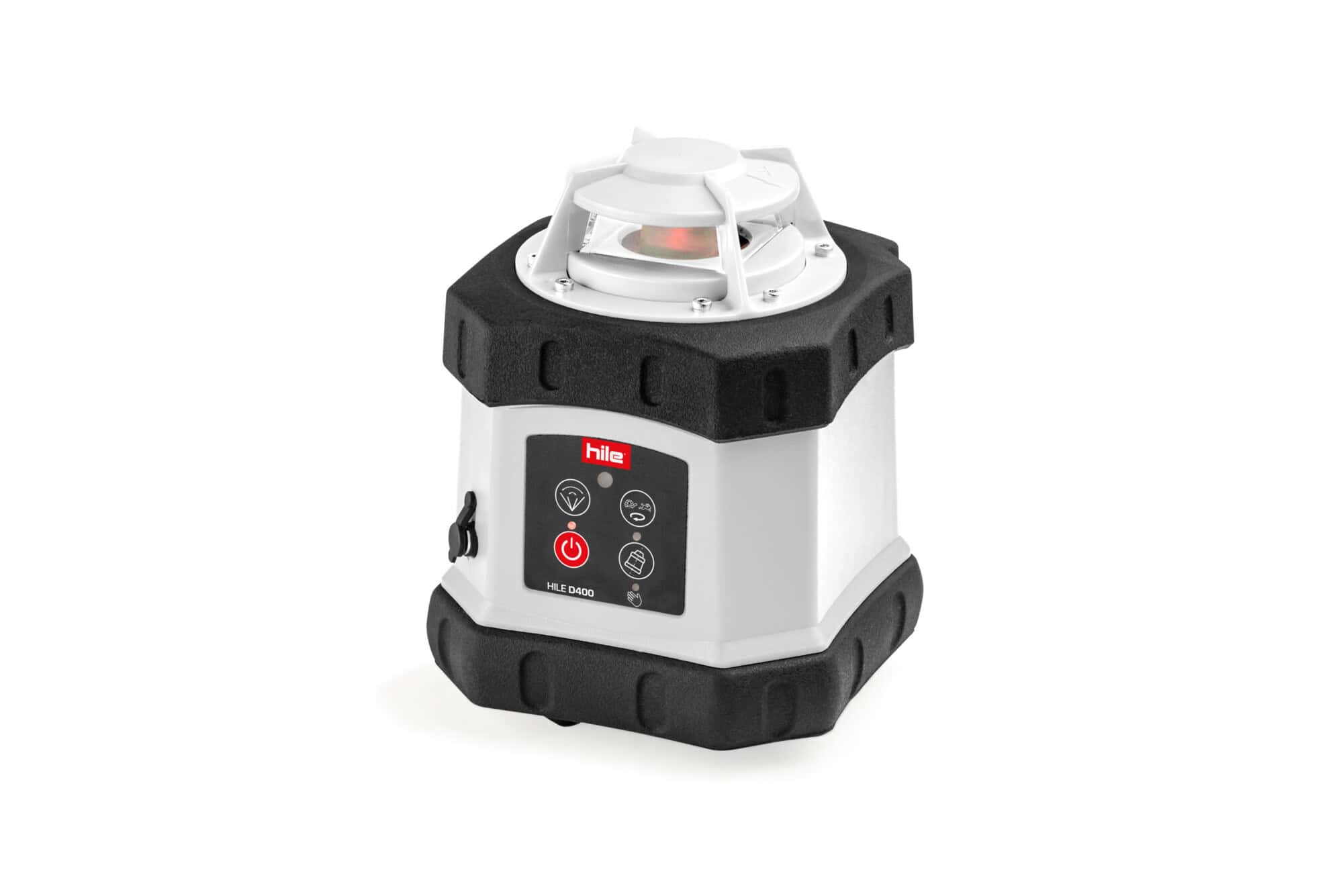– Rotacyjny niwelator laserowy Hile D400 z promieniem widzialnym o barwie czerwonej (610-650 nm)