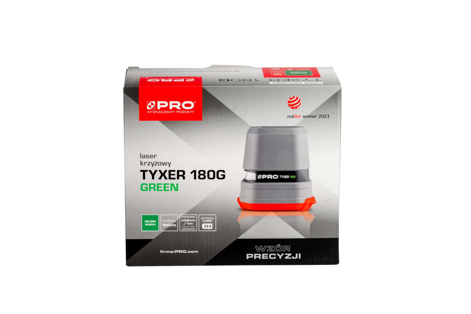- Laser krzyżowy TYXER 180G generuje dwie linie przecinające się pod kątek 90°.