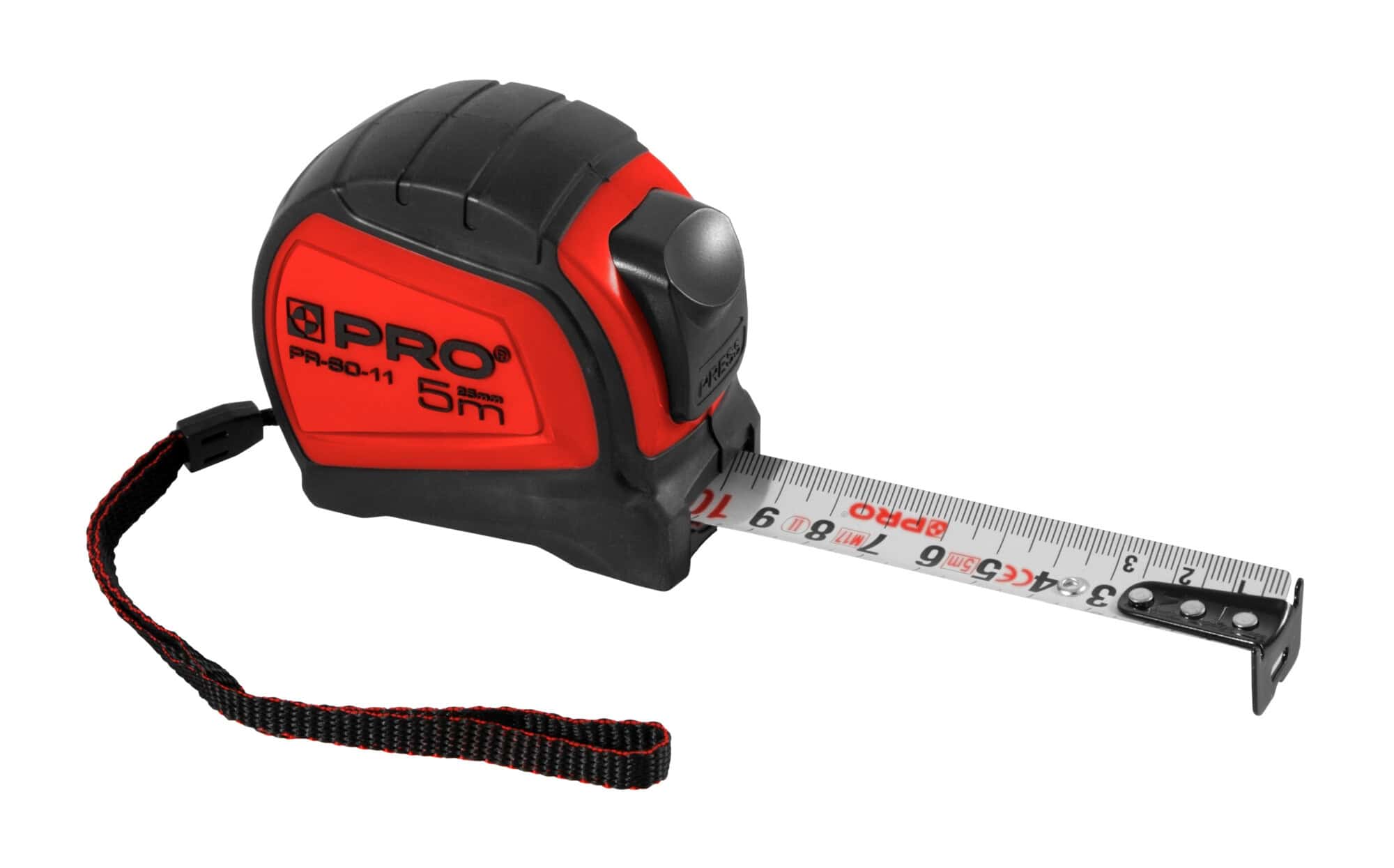 - Miara wyposażona w zderzak absorbujący uderzenie taśmy podczas zwijania