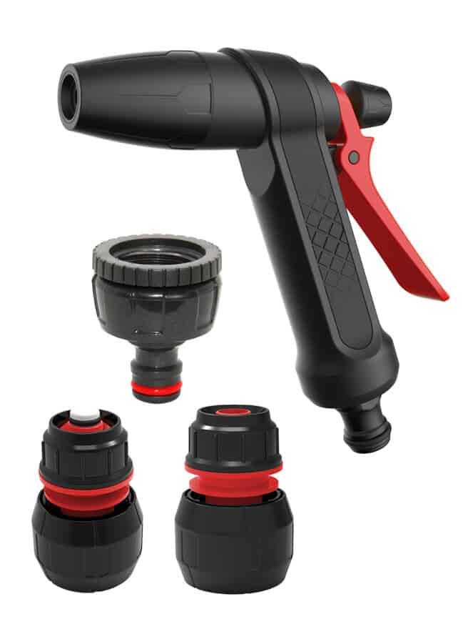 - Regulacja siły strumienia wody przez nacisk na spust