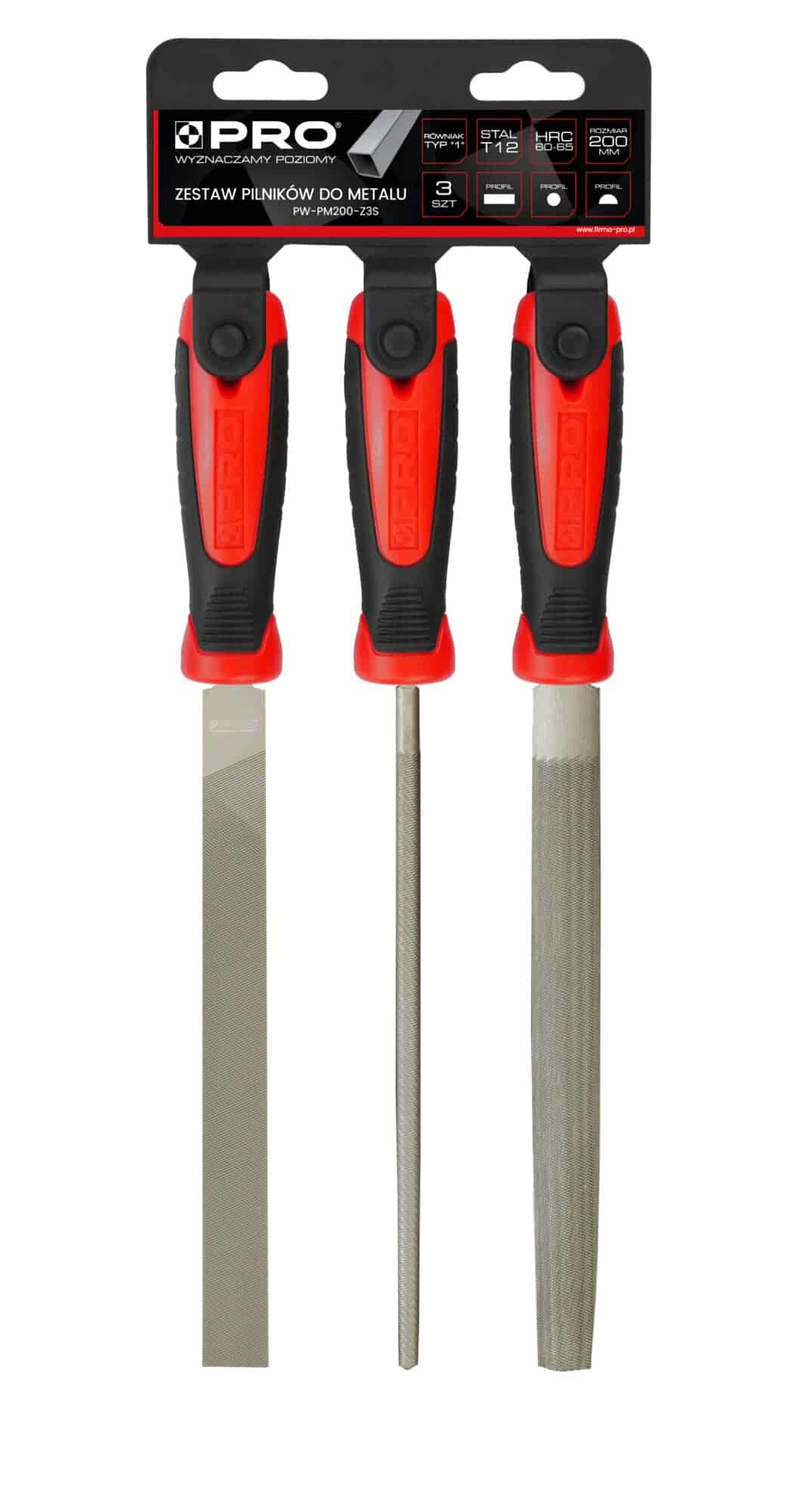 • Zestaw trzech pilników o profilu płaskim, okrągłym oraz półokrągłym