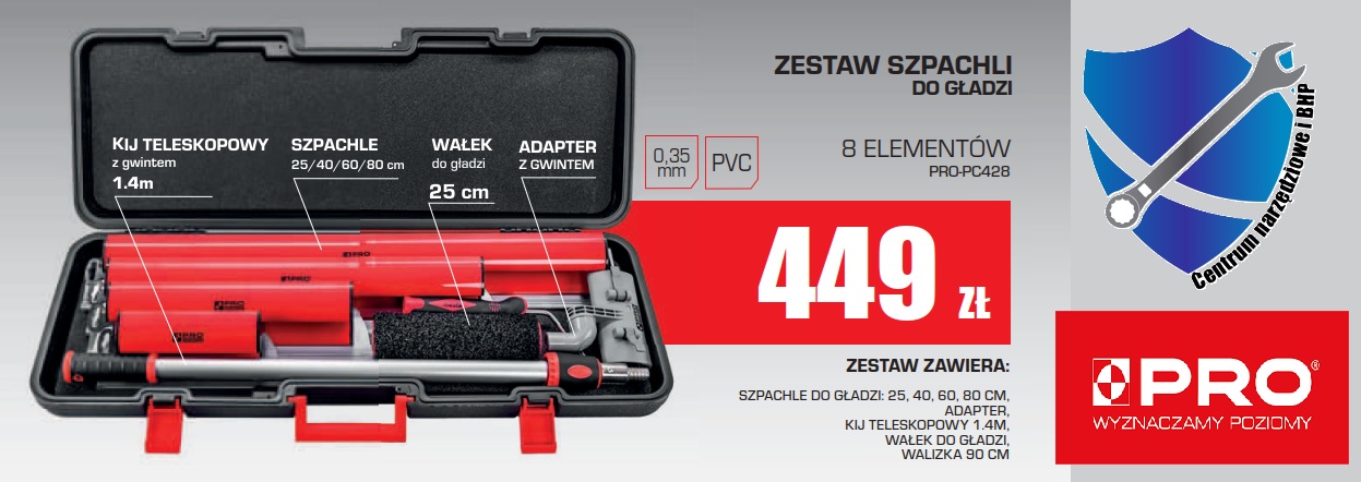 Szpachle do gładzi firmy Pro wyznaczamy poziomy