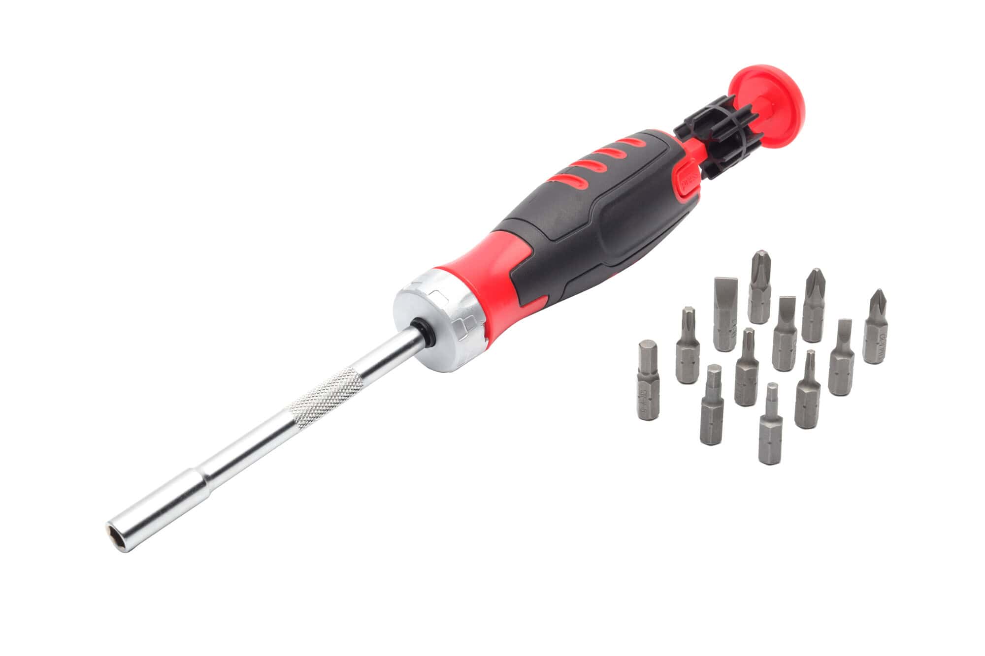 - 12 bitów w komplecie: SL 4, 5, 6 mm; PH 1, PH2, PH3; TORX T10, T15, T20; HEX H3, H4, H5
