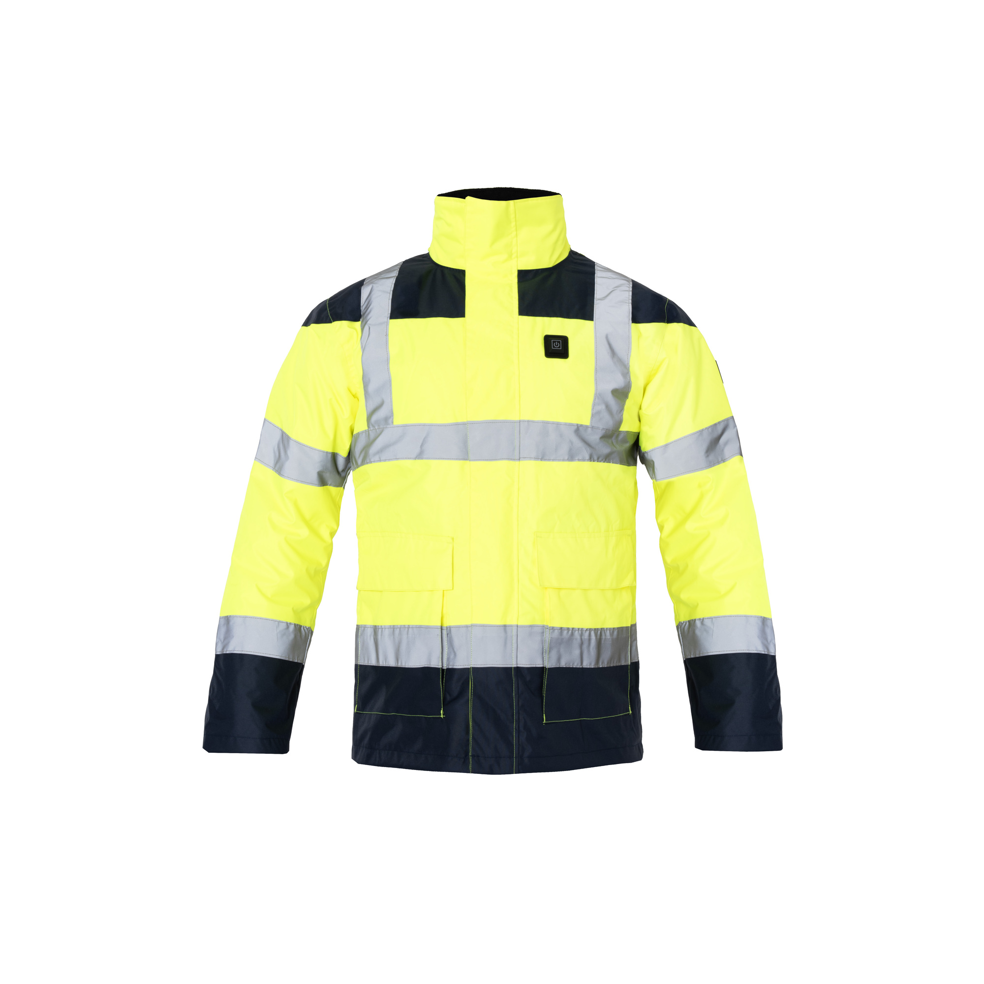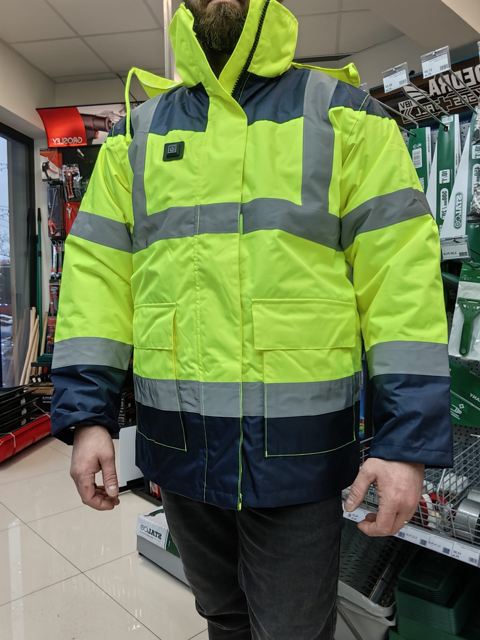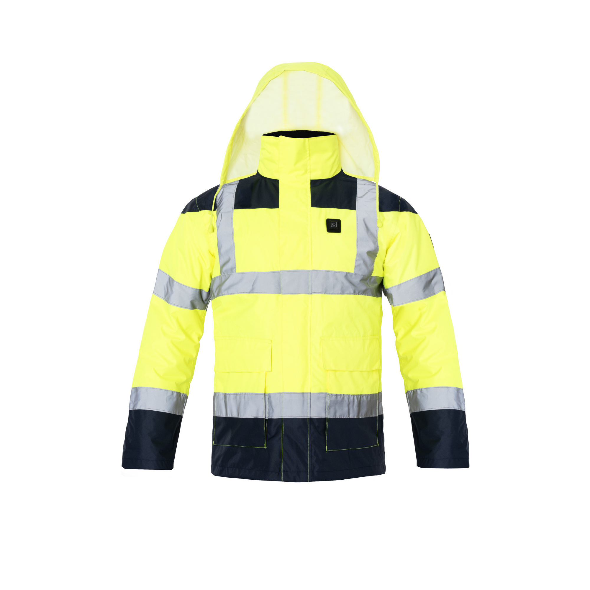 Kurtka ocieplana FULTON z poliestrową podszewką oraz warstwą zewnętrzną wykonaną w 100% z impregnowanego poliestru. Zasuwana na dwukierunkowy zamek błyskawiczny osłonięty listwą na rzepy. Posiada jedną kieszeń piersiową pod listwą głównego zamka, dwie kieszenie dolne osłonięte klapami na rzep, a także małą kieszeń od strony wewnętrznej. Kurtka posiada kaptur, który można zwinąć i schować w kołnierzu. Podklejane szwy zwiększają odporność na warunki atmosferyczne. Wysoka stójka kołnierza chroniąca przed wiatrem obszyta całkowicie od wewnątrz miękkim polarem. Funkcja ogrzewania zasilana z uniwersalnej baterii typu powerbank, aktywowana guzikiem na klatce piersiowej. Trzy ustawienia temperatury sygnalizowane kolorem guzika. Pięć stref grzewczych: dwie w przedniej i 3 tylnej części. Powerbank nie jest częścią zestawu. Rozmiary: S-XXL. Pakowanie: 1/10 karton. (UE) 2016/425 Kategoria I – tylko do minimalnych zagrożeń.