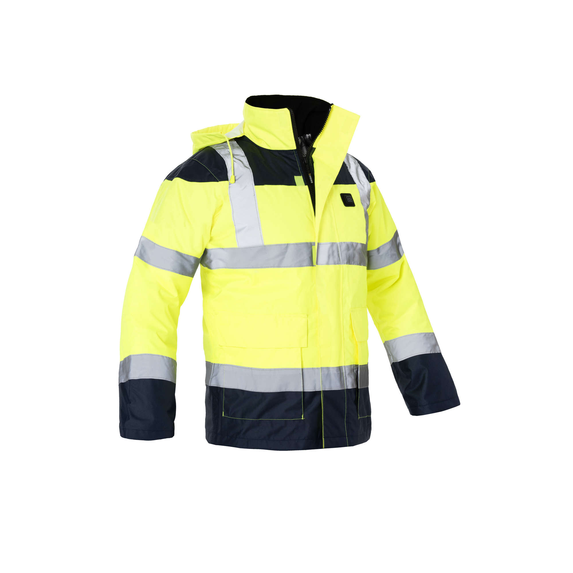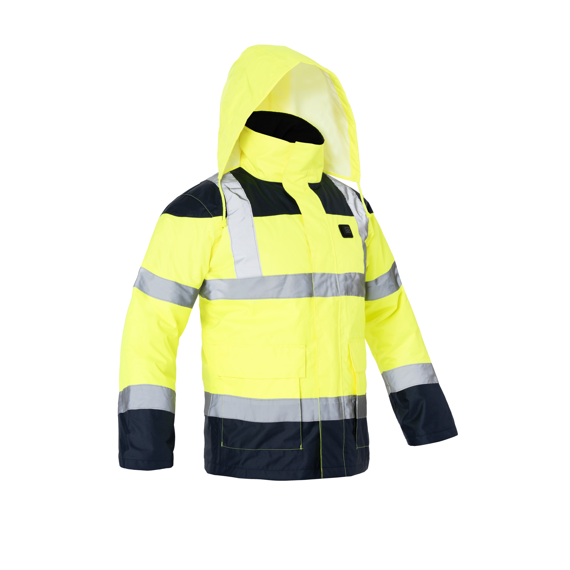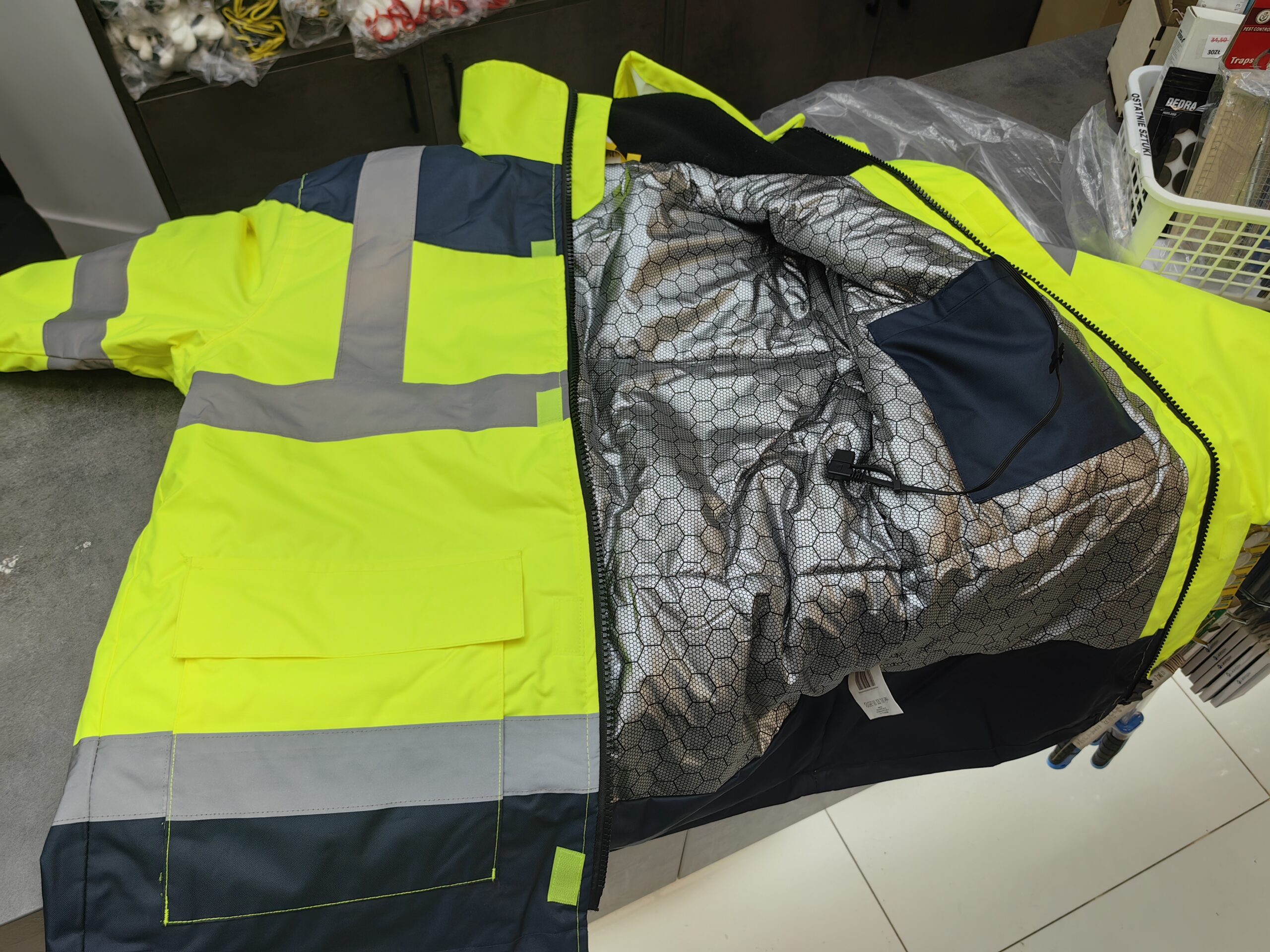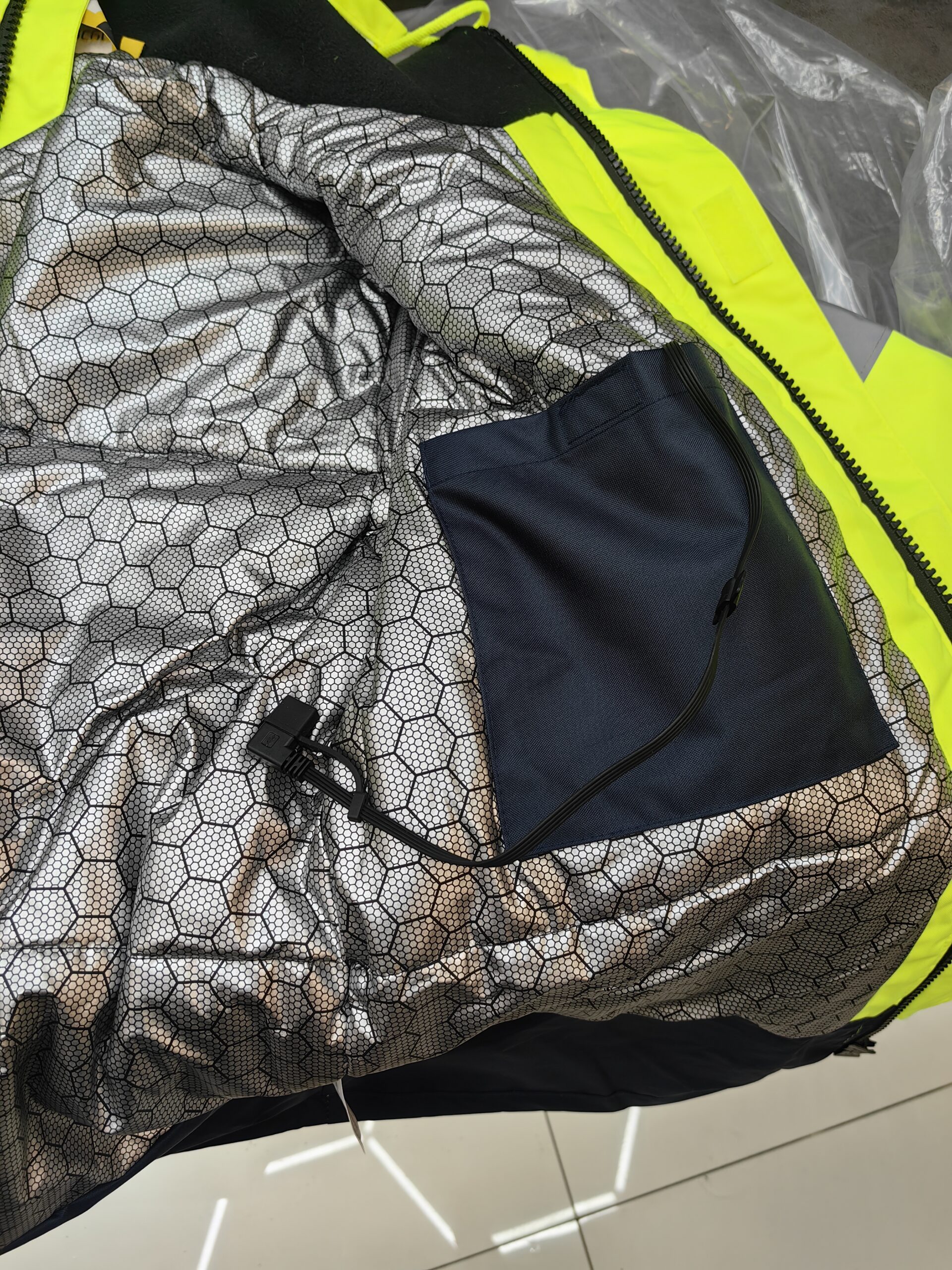 Kurtka ocieplana FULTON z poliestrową podszewką oraz warstwą zewnętrzną wykonaną w 100% z impregnowanego poliestru. Zasuwana na dwukierunkowy zamek błyskawiczny osłonięty listwą na rzepy. Posiada jedną kieszeń piersiową pod listwą głównego zamka, dwie kieszenie dolne osłonięte klapami na rzep, a także małą kieszeń od strony wewnętrznej. Kurtka posiada kaptur, który można zwinąć i schować w kołnierzu. Podklejane szwy zwiększają odporność na warunki atmosferyczne. Wysoka stójka kołnierza chroniąca przed wiatrem obszyta całkowicie od wewnątrz miękkim polarem. Funkcja ogrzewania zasilana z uniwersalnej baterii typu powerbank, aktywowana guzikiem na klatce piersiowej. Trzy ustawienia temperatury sygnalizowane kolorem guzika. Pięć stref grzewczych: dwie w przedniej i 3 tylnej części. Powerbank nie jest częścią zestawu. Rozmiary: S-XXL. Pakowanie: 1/10 karton. (UE) 2016/425 Kategoria I – tylko do minimalnych zagrożeń.