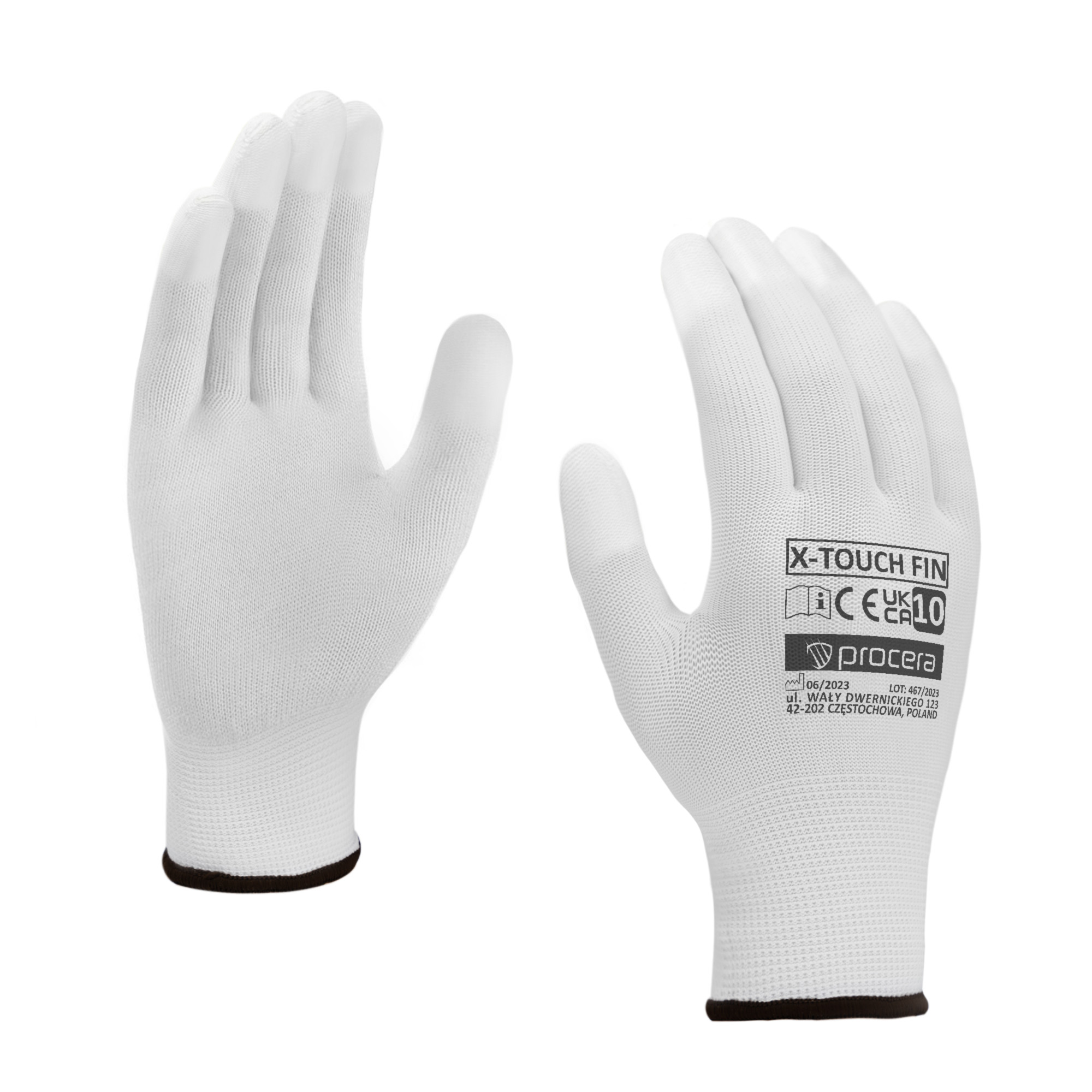 Rękawice X-TOUCH FIN wykonane z poliestru, powlekane na czubkach palców białym poliuretanem. Idealne do prac manualnych. Bardzo dobre czucie trzymanego przedmiotu. Dobrze dopasowują się do kształtu dłoni. Rozciągliwe i elastyczne. Zakończone ściągaczem. CE EN 420. Opakowanie: karton 12/240. Kolor: biały/biały.
