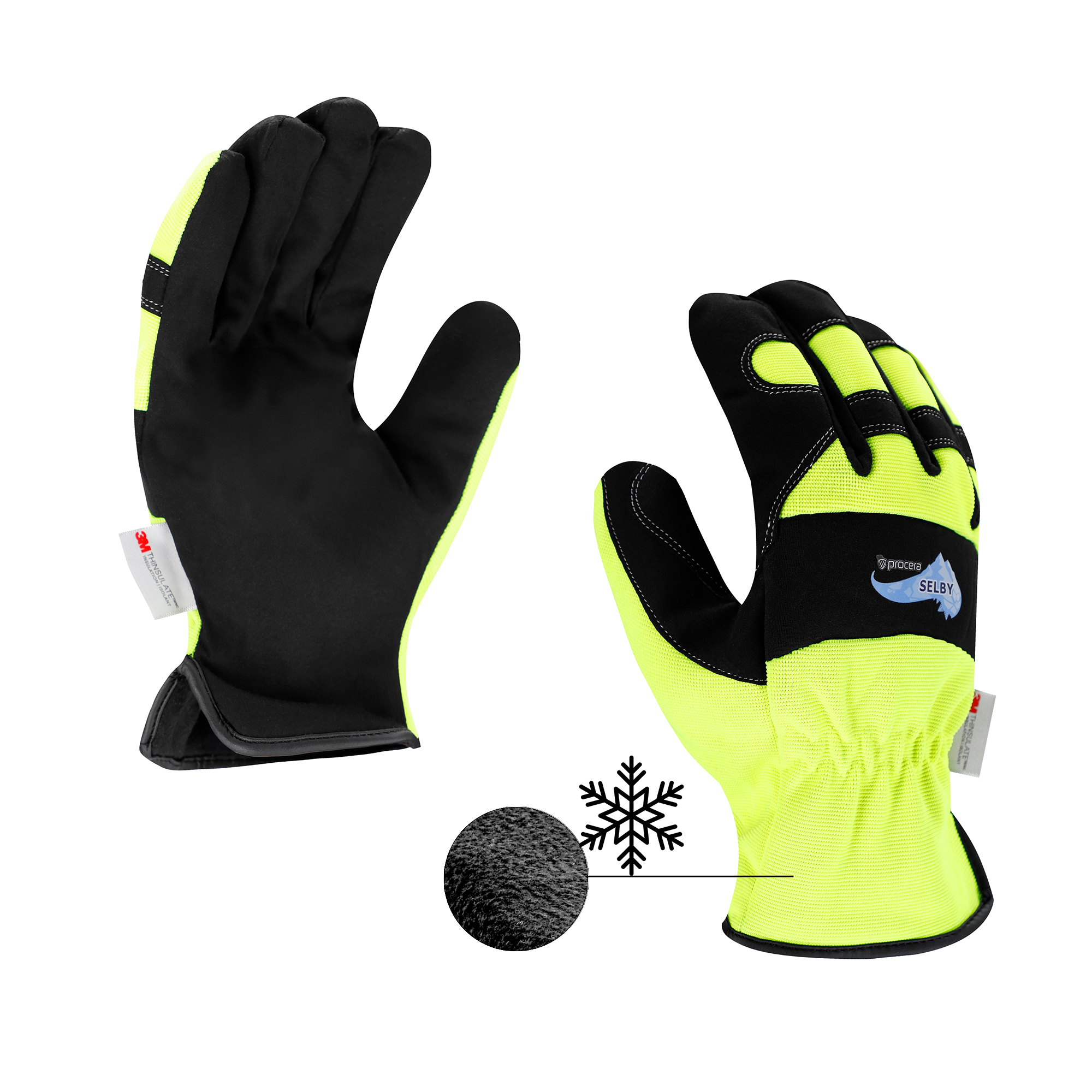 Rękawice X-SELBY wykonane ze skóry syntetycznej i spandexu we fluorescencyjnym kolorze, z neoprenową wstawką na kostkach. Ocieplenie 3M Thinsulate zapewnia doskonałą izolację termiczną i komfort. Zakończone mankietem ze ściągaczem w nadgarstku. Dodatkowe wzmocnienia na kciukach, kostkach i palcach wskazujących. Dobrze dopasowują się do kształtu dłoni. Odpowiednie do prac manualnych w środowiskach o obniżonej temperaturze otoczenia. Każda para w osobnym woreczku. Pakowanie 1/12/72. EN ISO 21420:2020