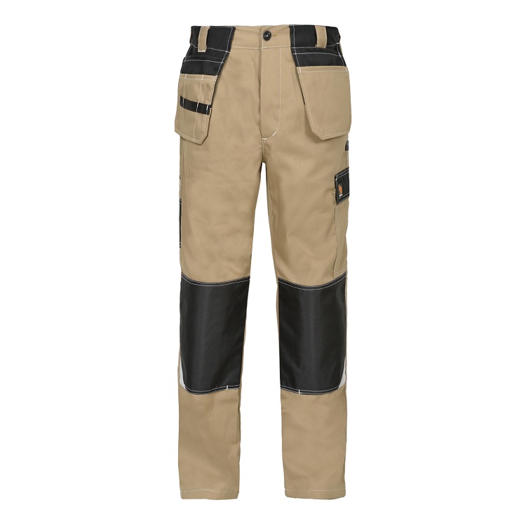 Spodnie do pasa PROMONTER. Spodnie wykonane z wytrzyma³ej na rozdzieranie i tarcie tkaniny typu Twill o sk³adzie 65% poliester i 35% bawe³na, o gramaturze 260g/m2. Na kolanach wzmocnienia z materia³u typu OXFORD zabezpieczaj¹cego przed przetarciem. Mo¿liwoœæ zastosowania wk³adek nakolannikowych. Dodatkowe elementy odblaskowe. Du¿a liczba funkcjonalnych kieszeni w tym dwie zwiêkszaj¹ce swobodê ruchów podwójne wisz¹ce kieszenie monterskie z podzia³kami i dodatkowymi elementami do zamocowania akcesoriów lub narzêdzi, kieszeñ na calówkê, kieszeñ typu bojówka, dwie kieszenie tylne i dwie kieszenie boczne. Gumy dopasowuj¹ce w tylnej czêœci pasa. Dodatkowe wzmocnienia, rygle i podwójne szwy zwiêkszaj¹ce wytrzyma³oœæ. Wyprodukowano w Polsce zgodnie z ISO 9001. Rozmiary od 48-62. EN ISO 13688:2013